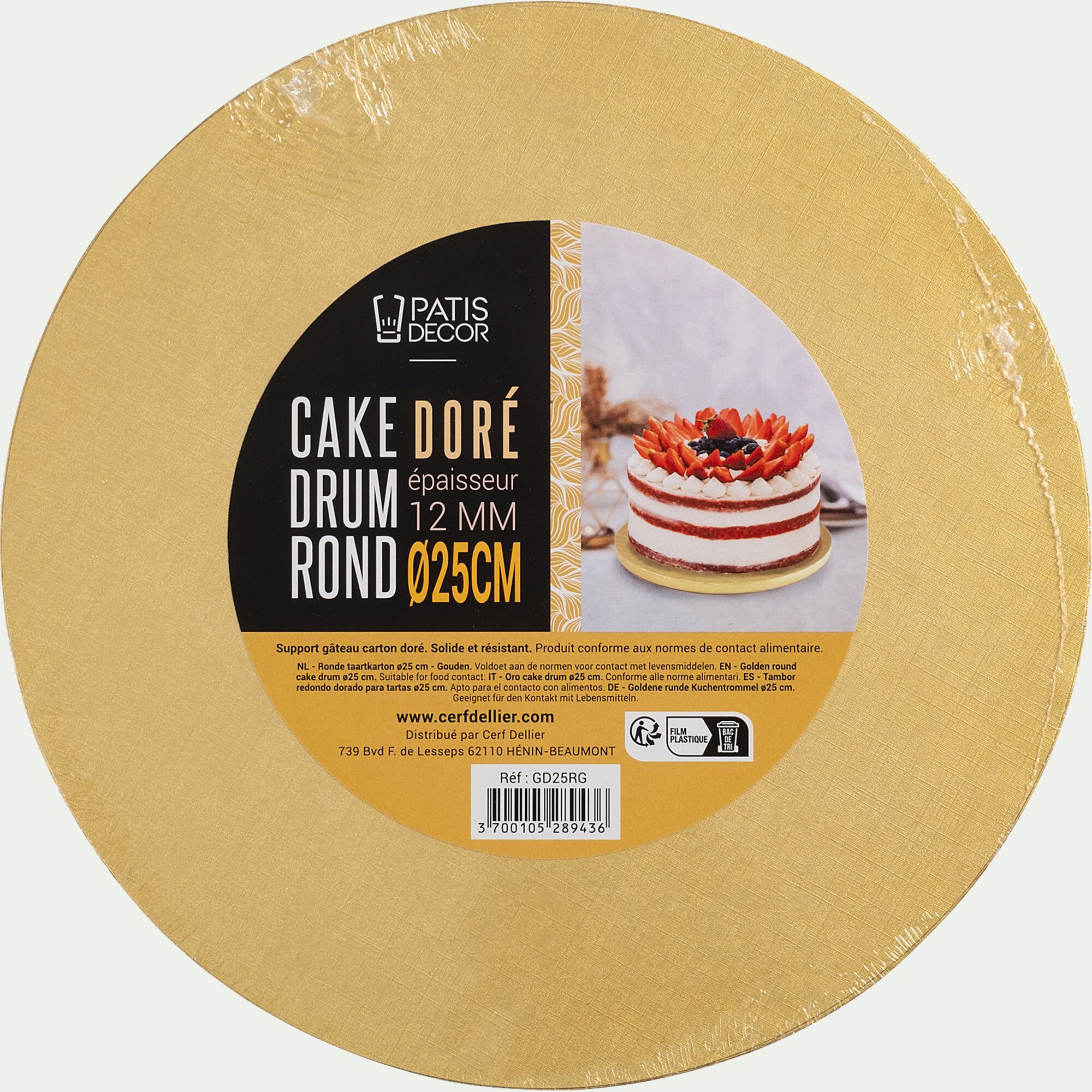 PATISDECOR - Cake drum rond D25cm - doré métallisé