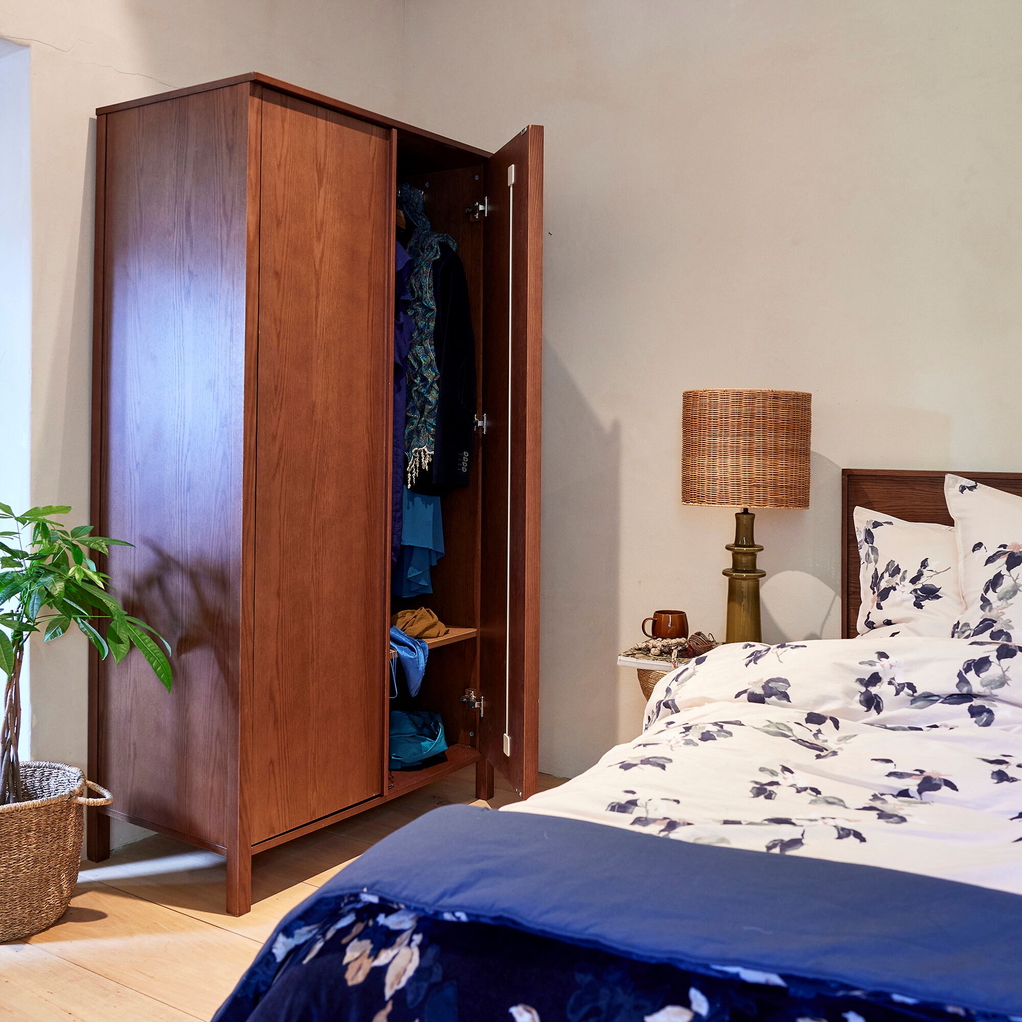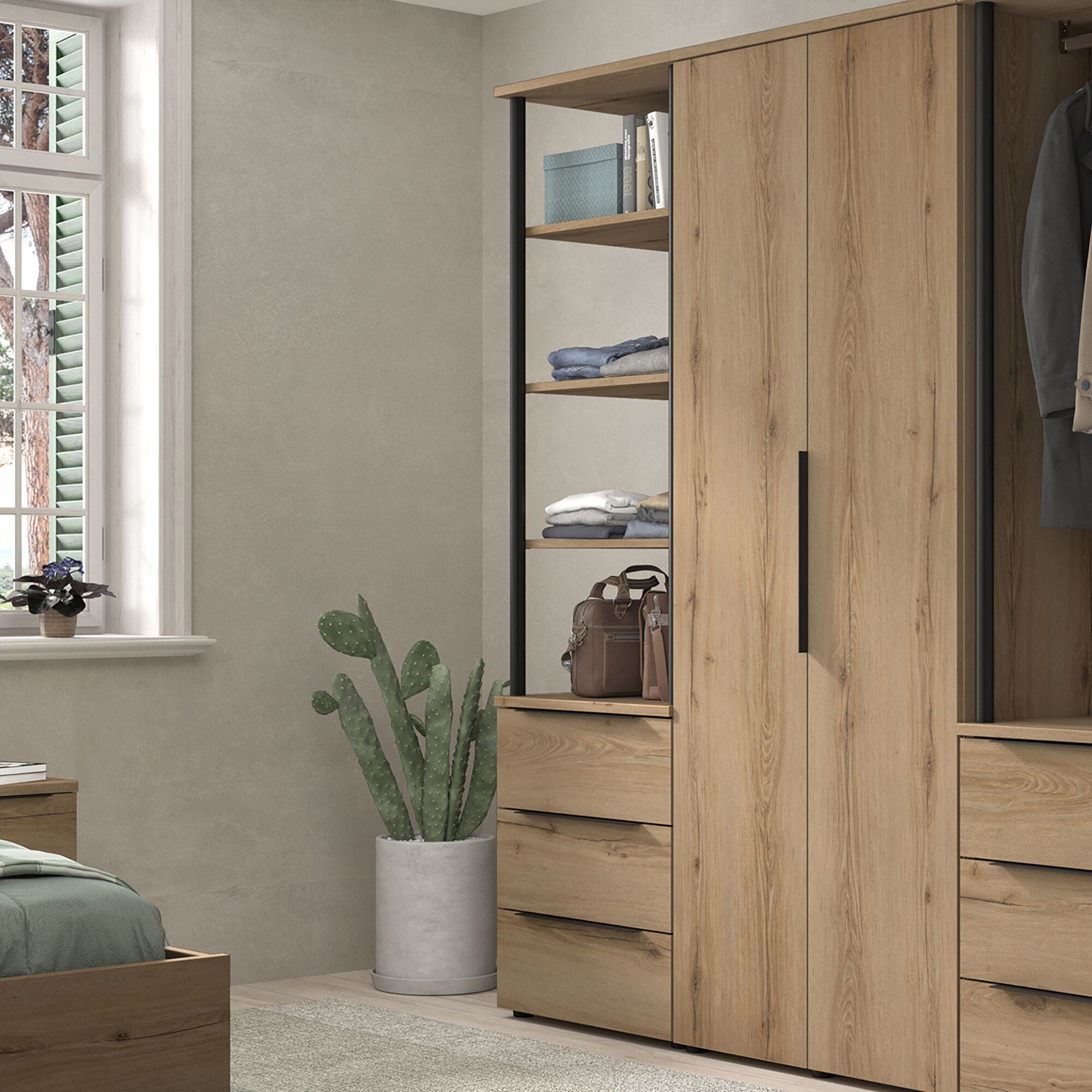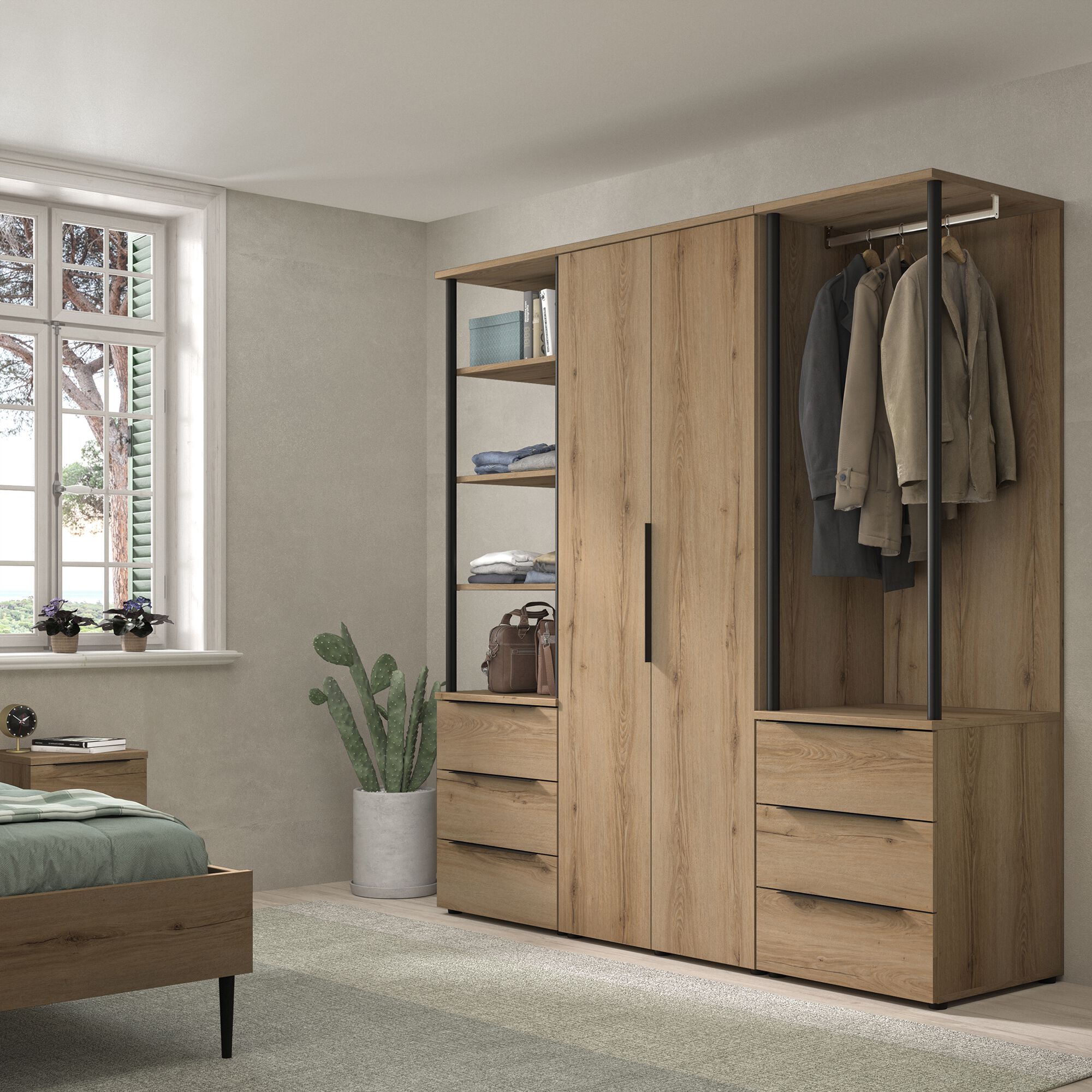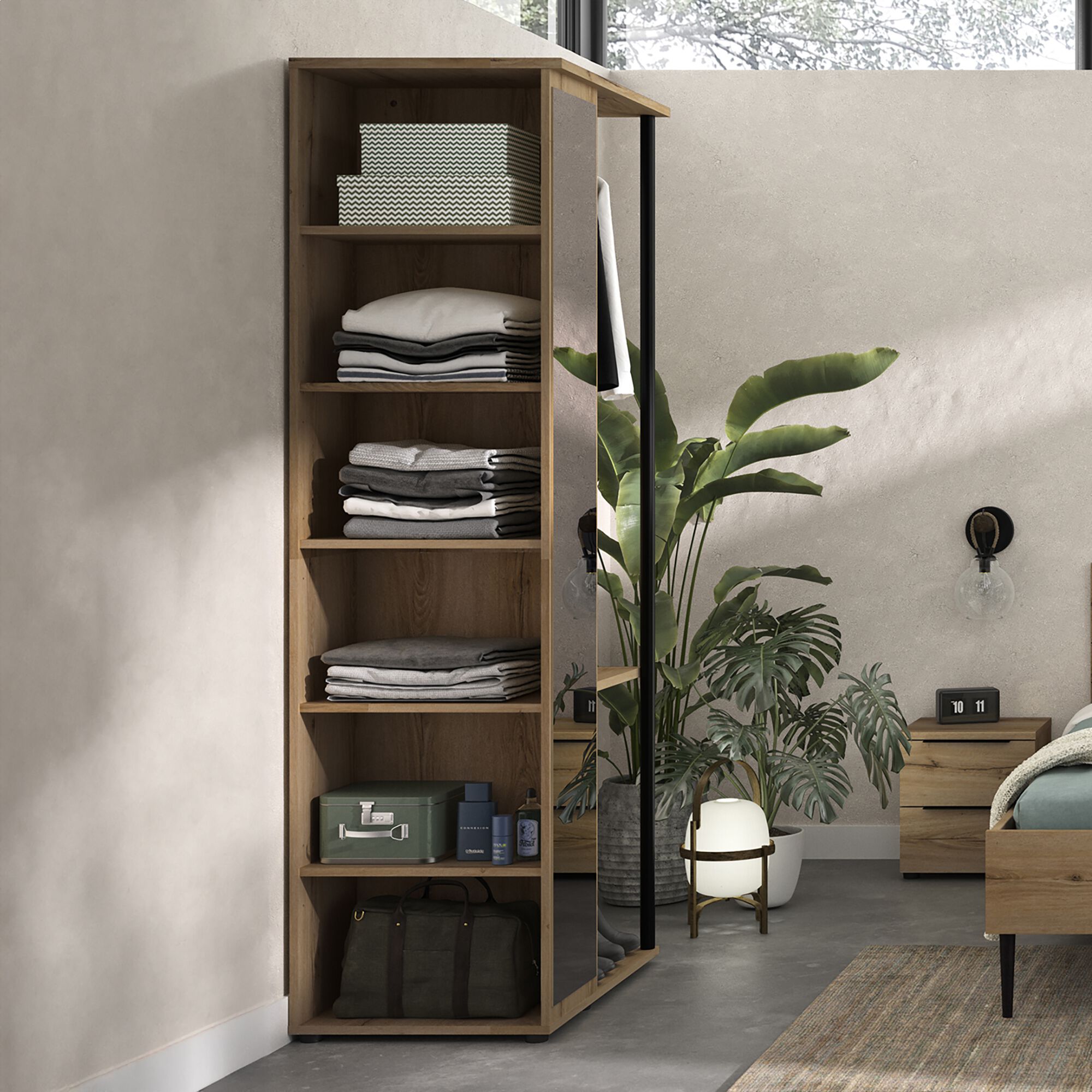 LUCIAN - Armoire ouverte avec miroir H210cm - bois clair