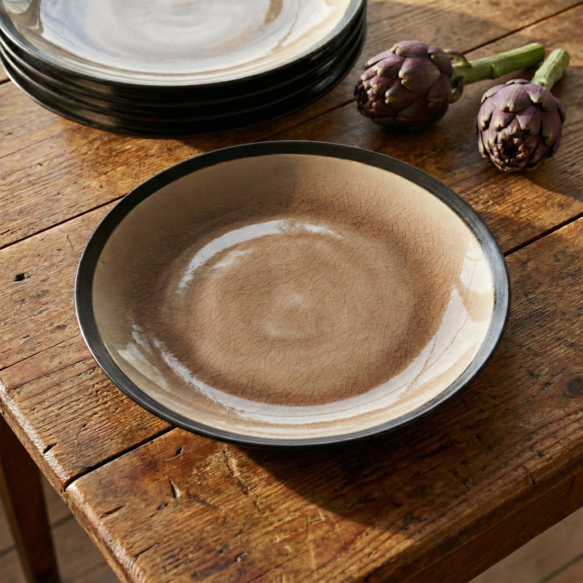 FRIA - Assiette à dessert rayée en grès D21,6cm - noir