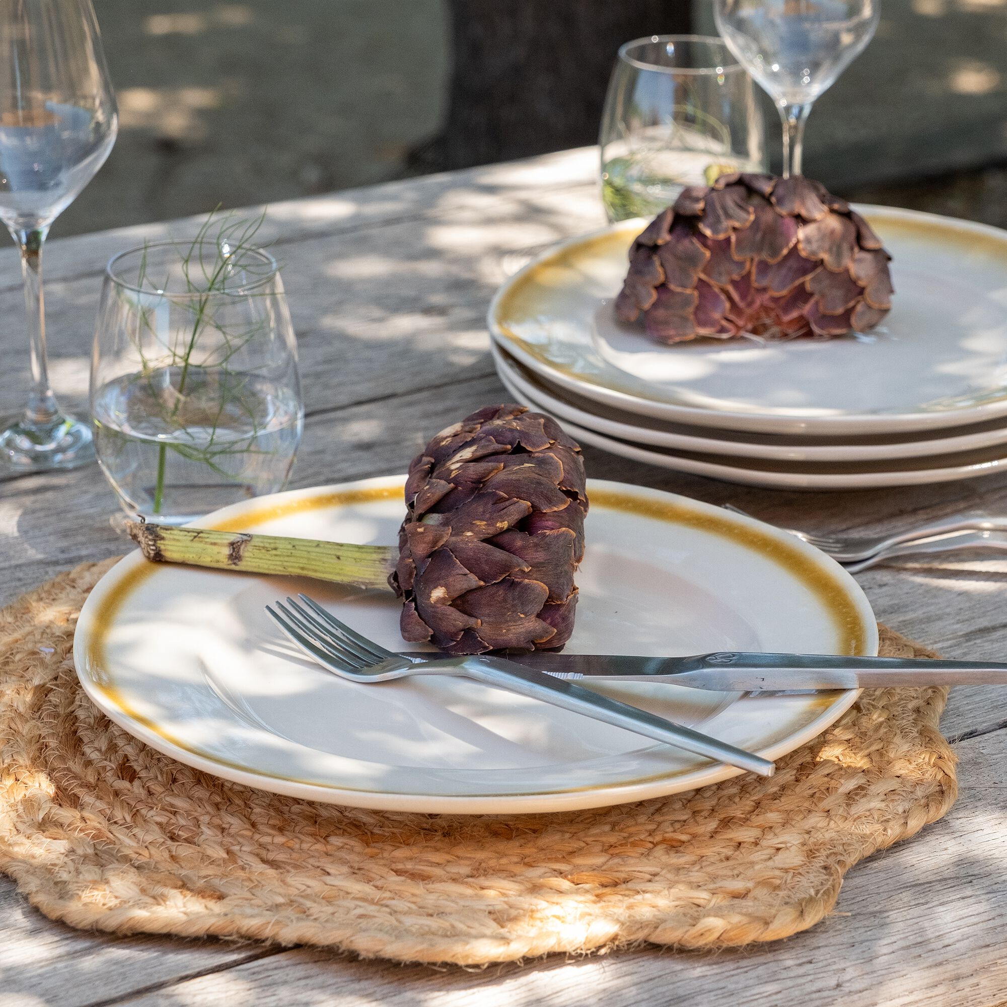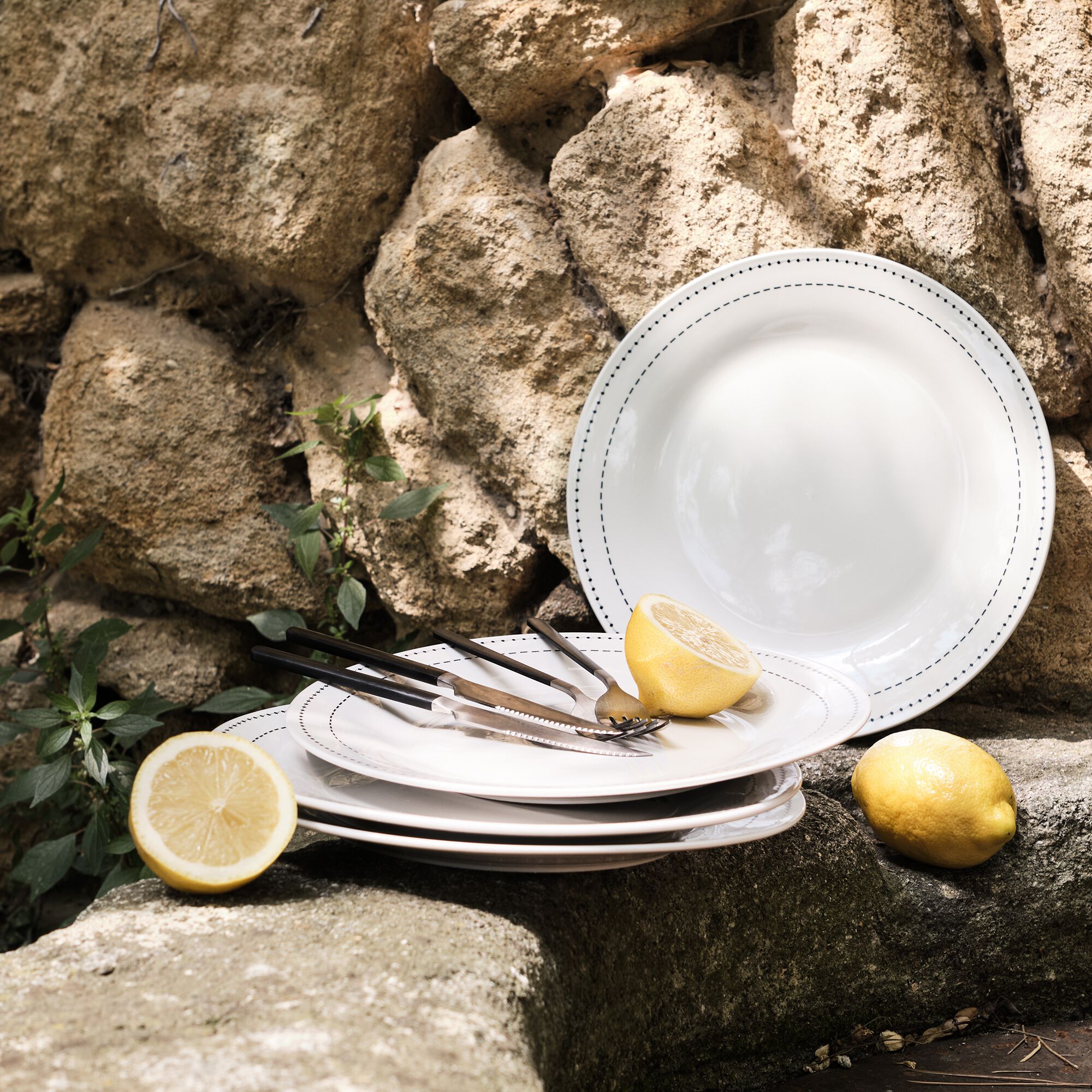 FRIA - Assiette à dessert rayée en grès D21,6cm - blanc