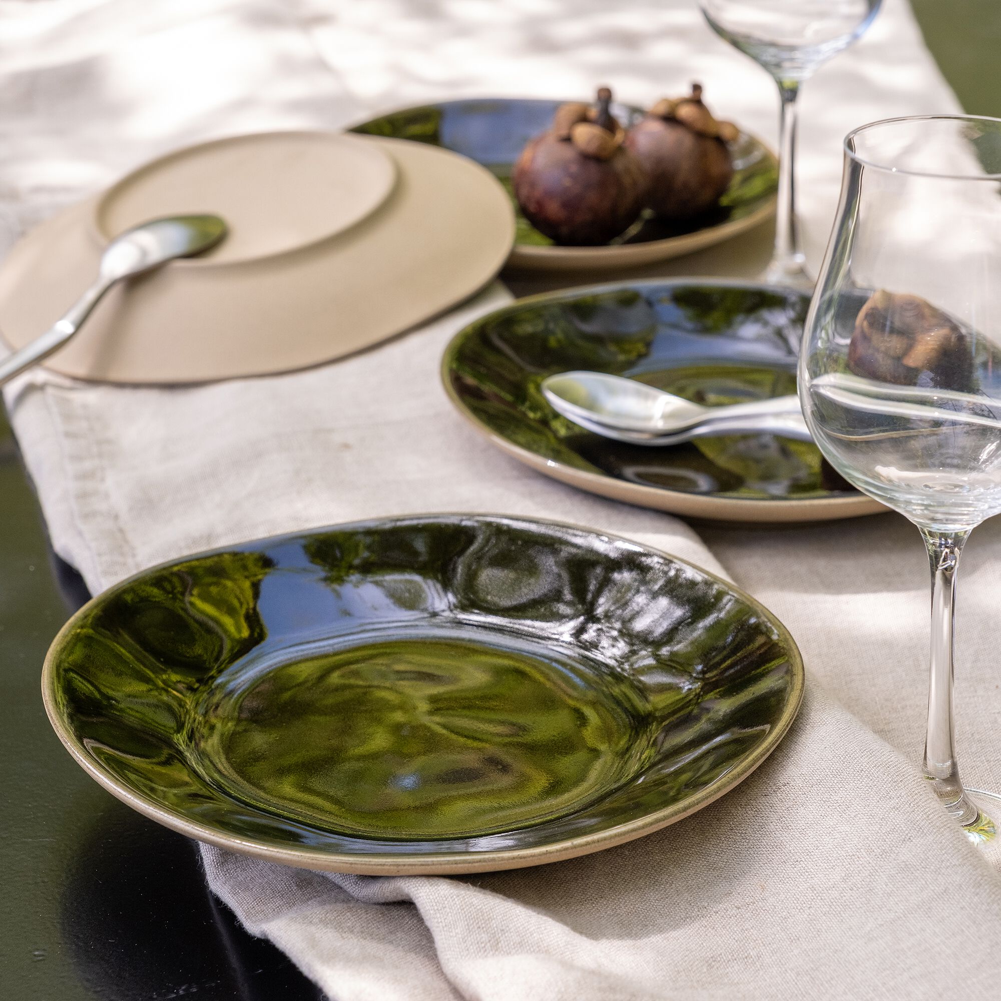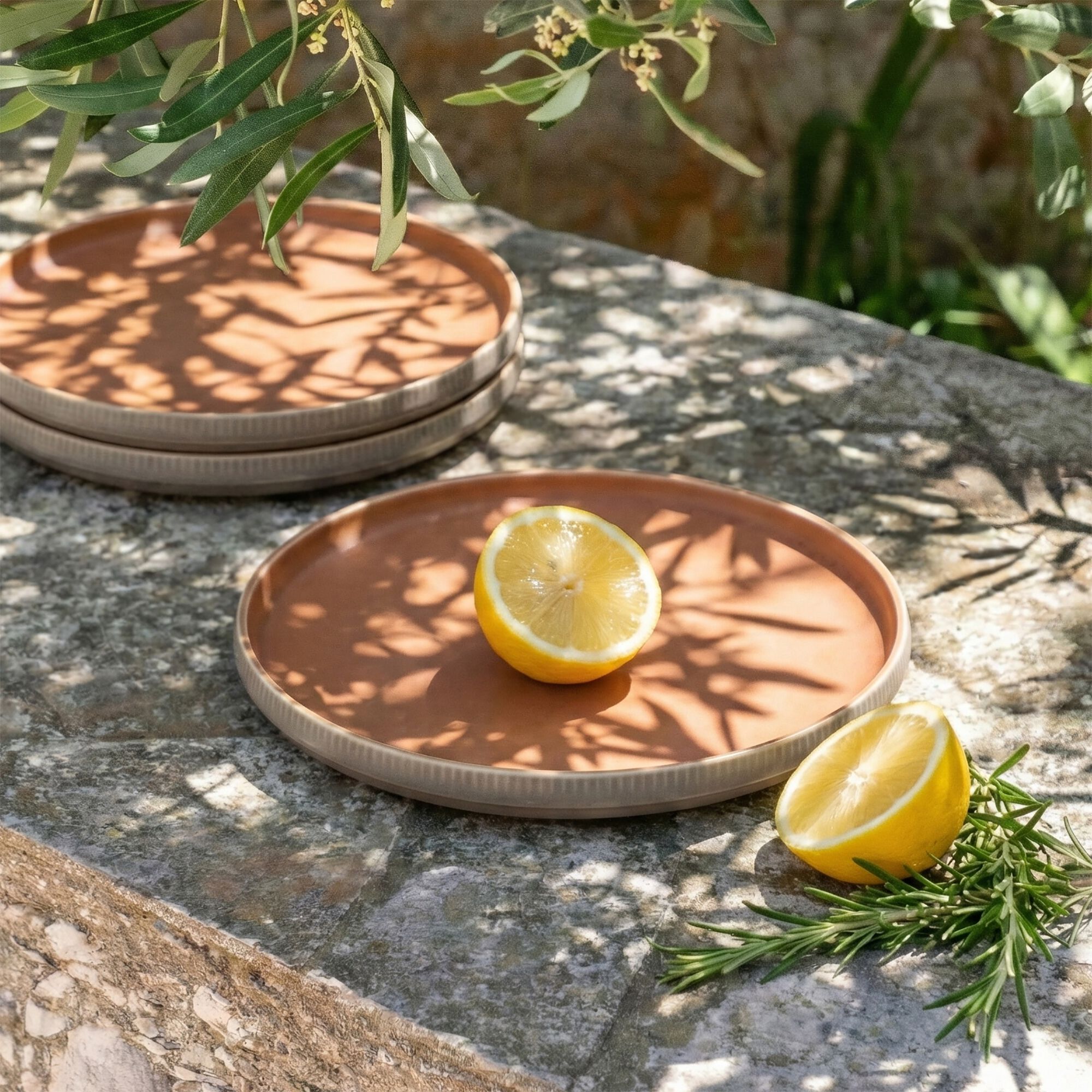 SIENNA - Assiette plate en grès D27,2cm - brun café