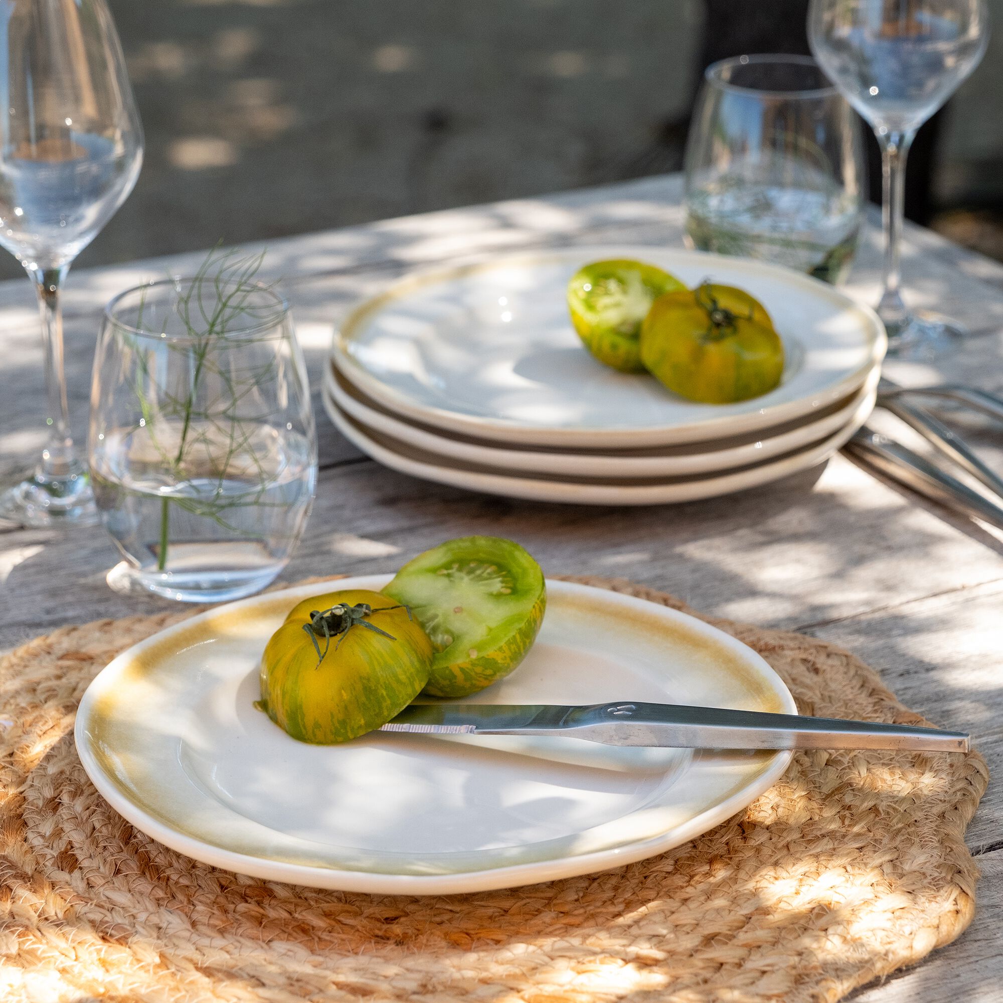 MIEL - Assiette à dessert peinte en grès D21,5cm - blanc
