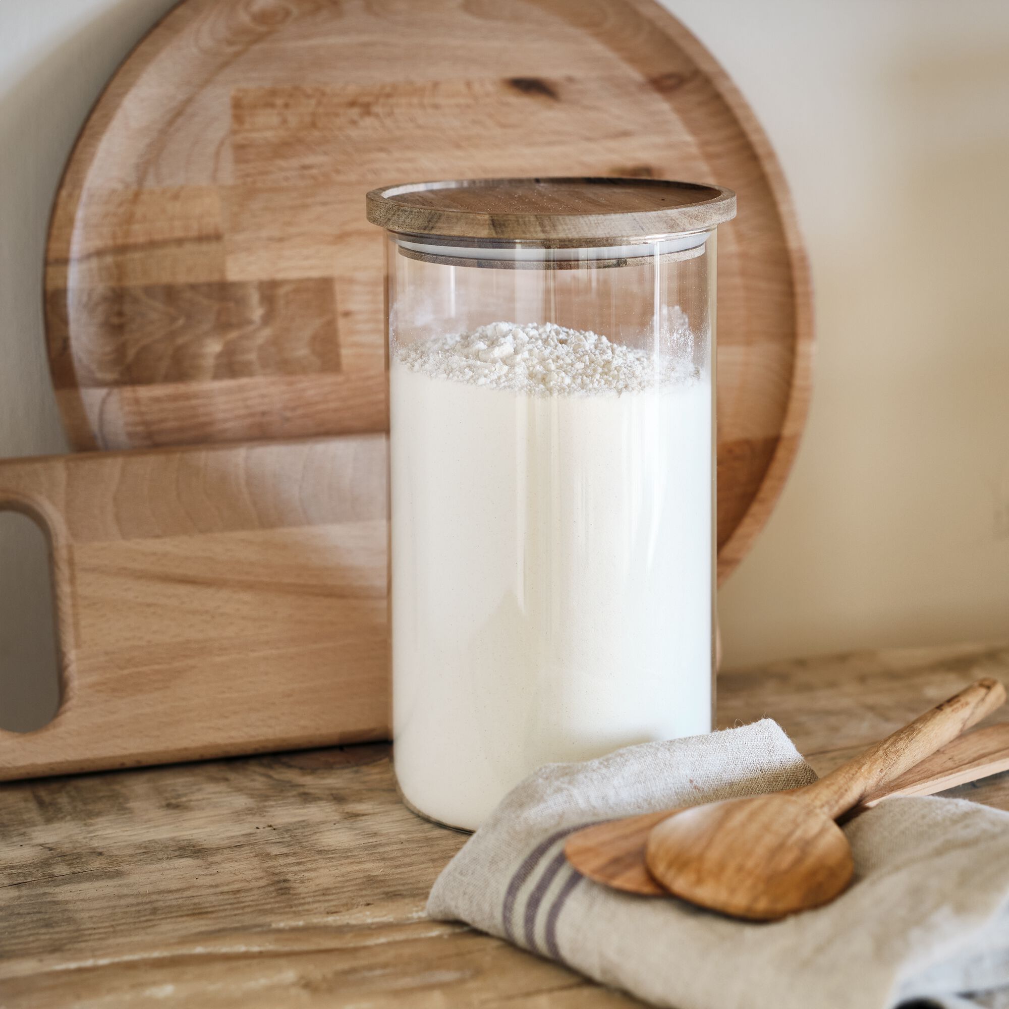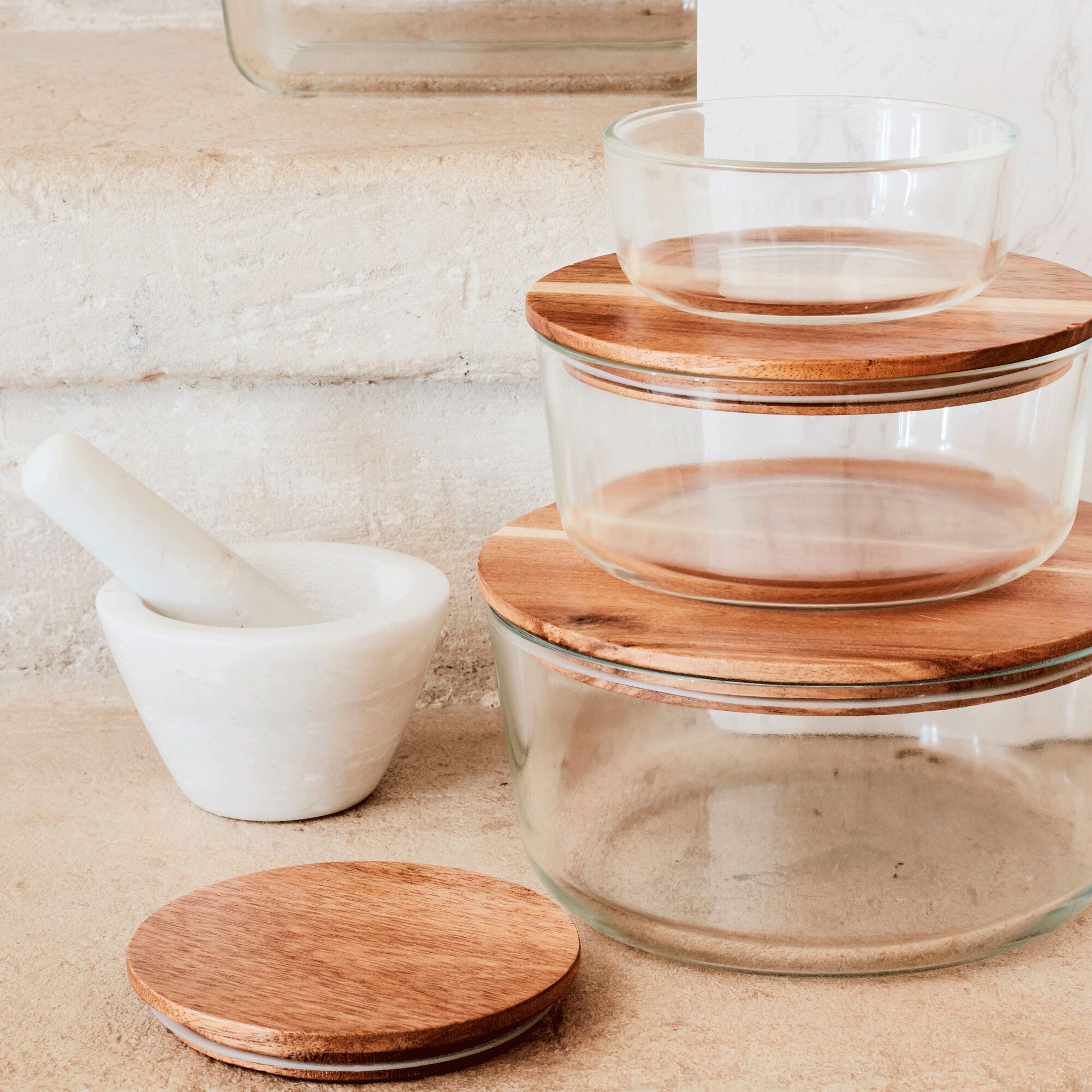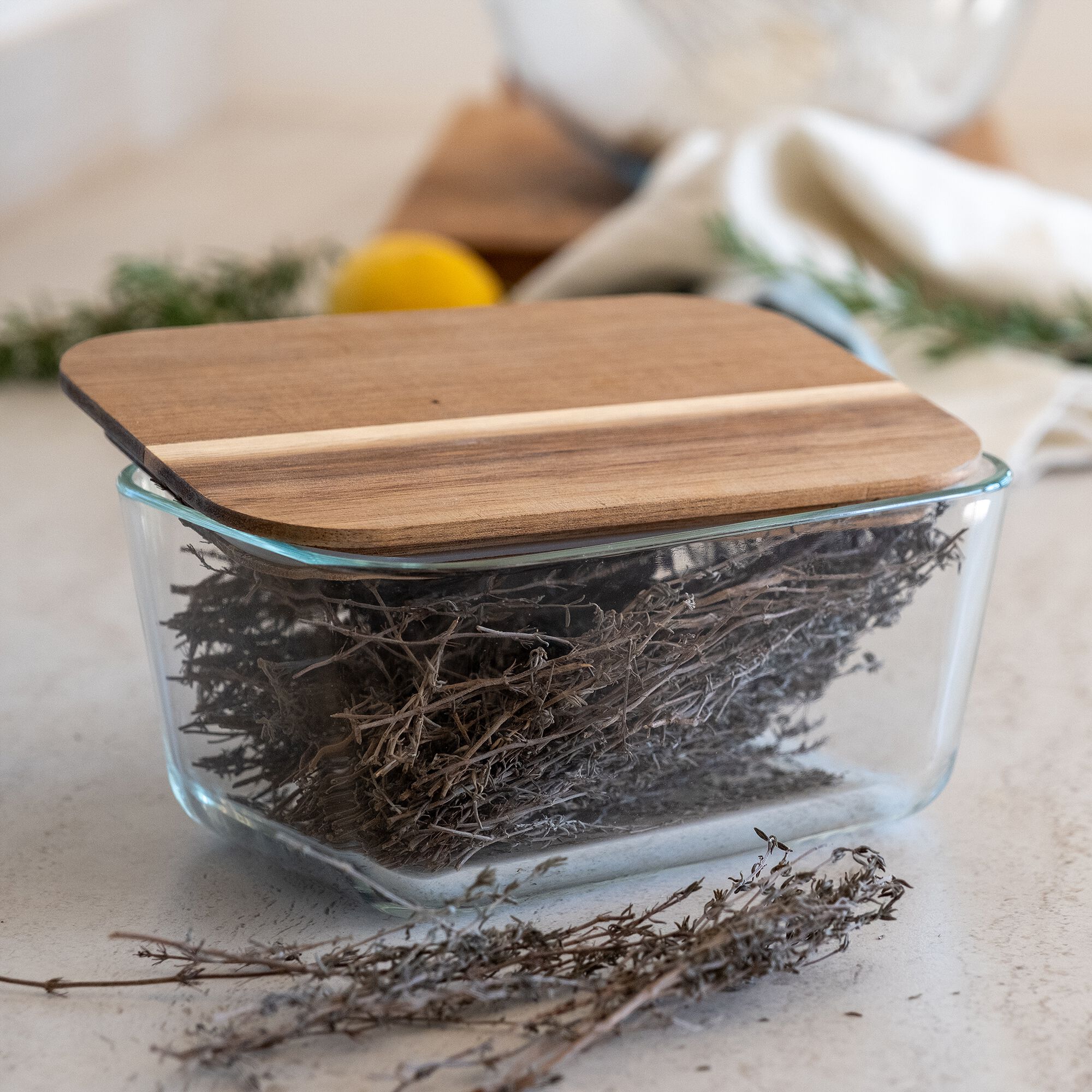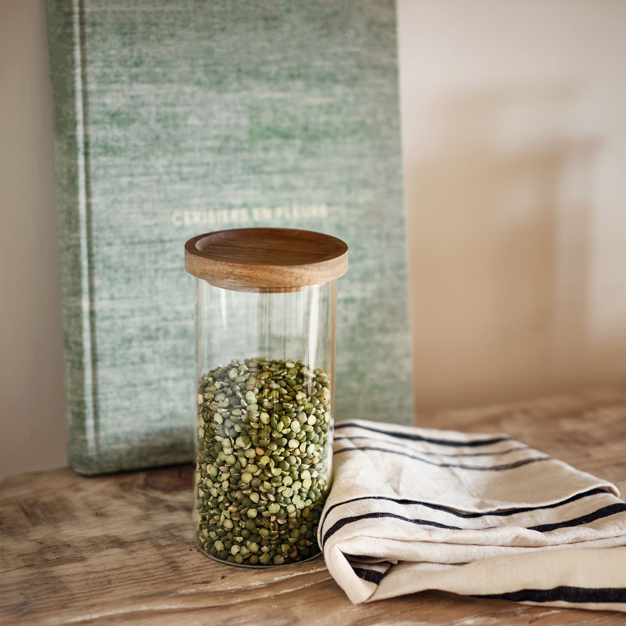 SAPAN - Boîte ronde en verre avec couvercle en bois D18,6cm