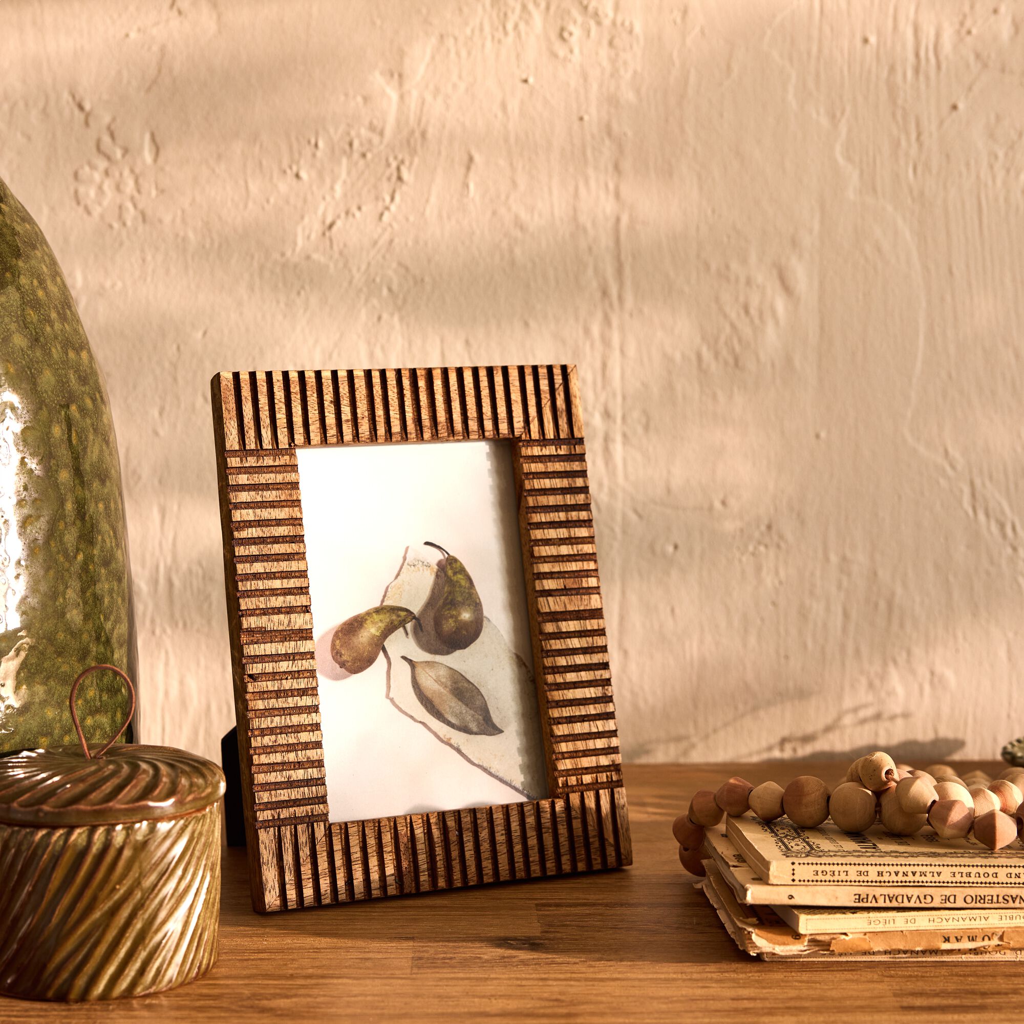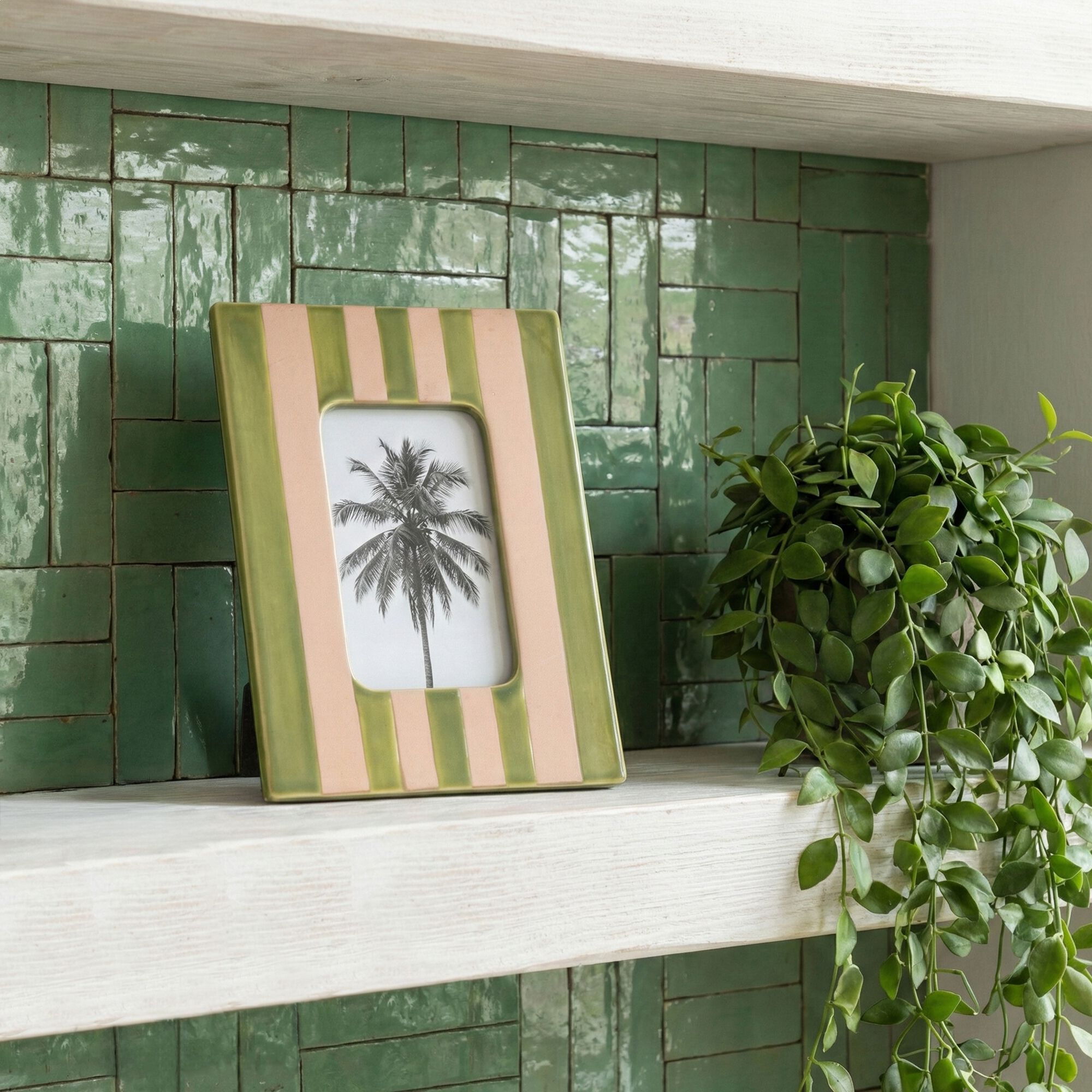 GINO - Cadre photo en faïence à rayures 21x26cm - vert