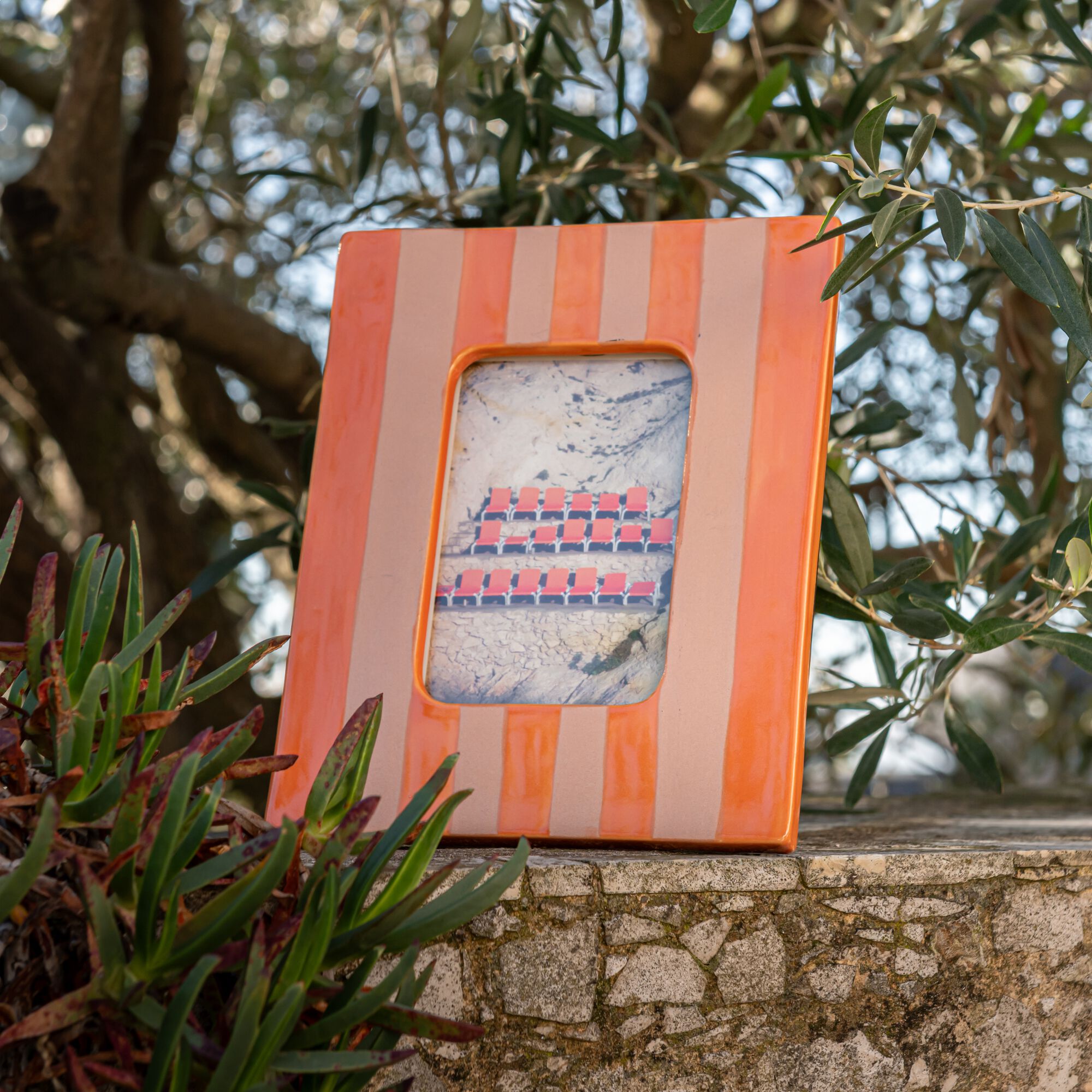 GINO - Cadre photo en faïence à rayures 21x26cm - orange