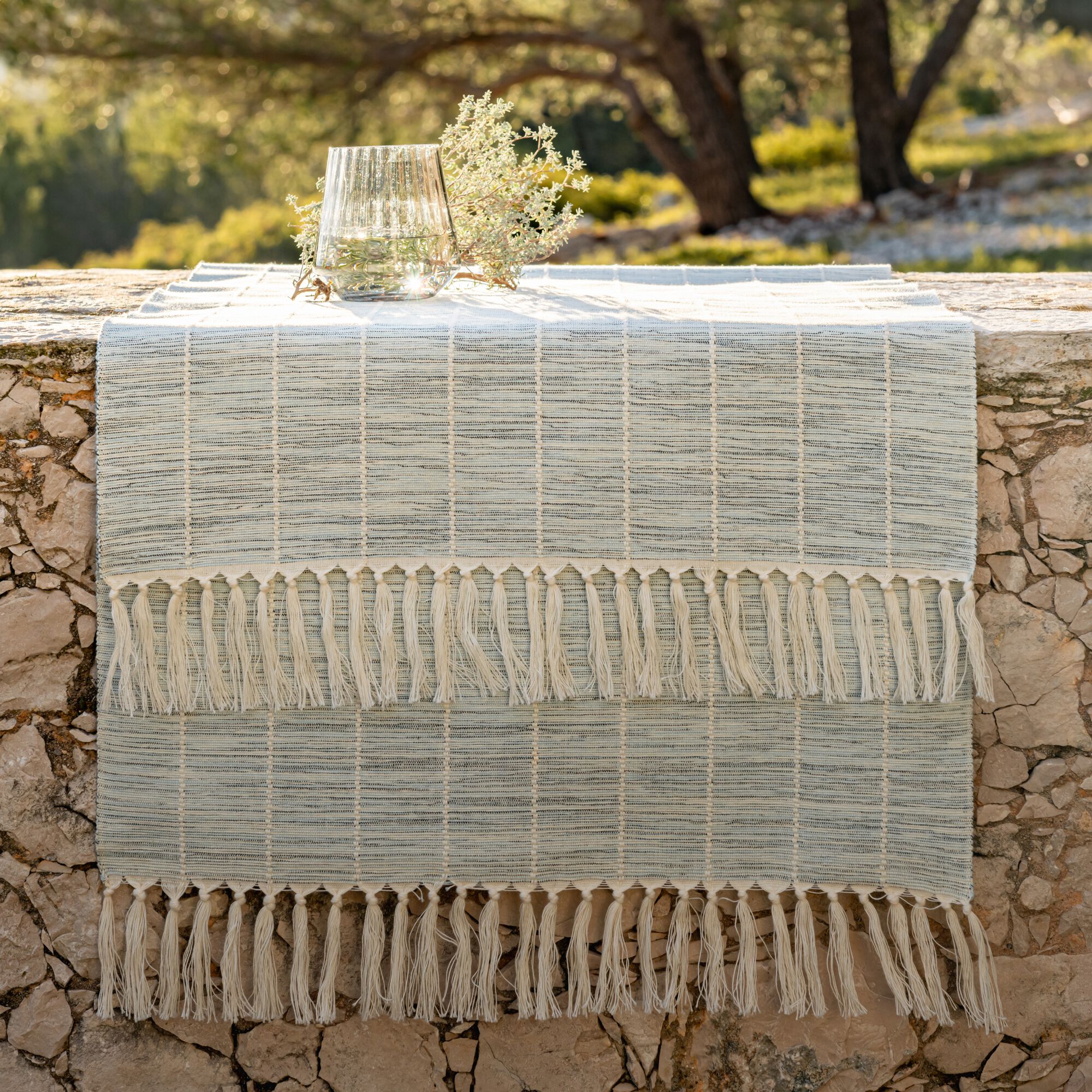 SONA - Chemin de table en paille et coton - naturel 50x150cm