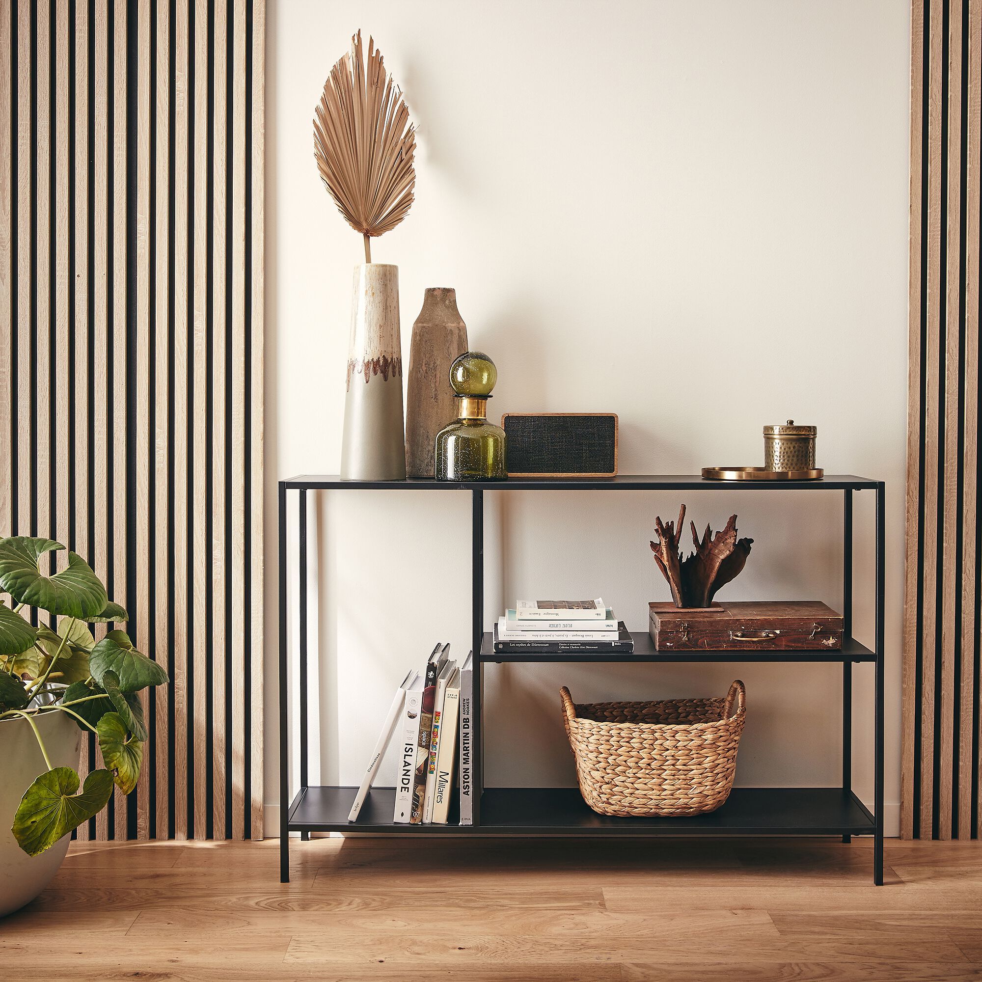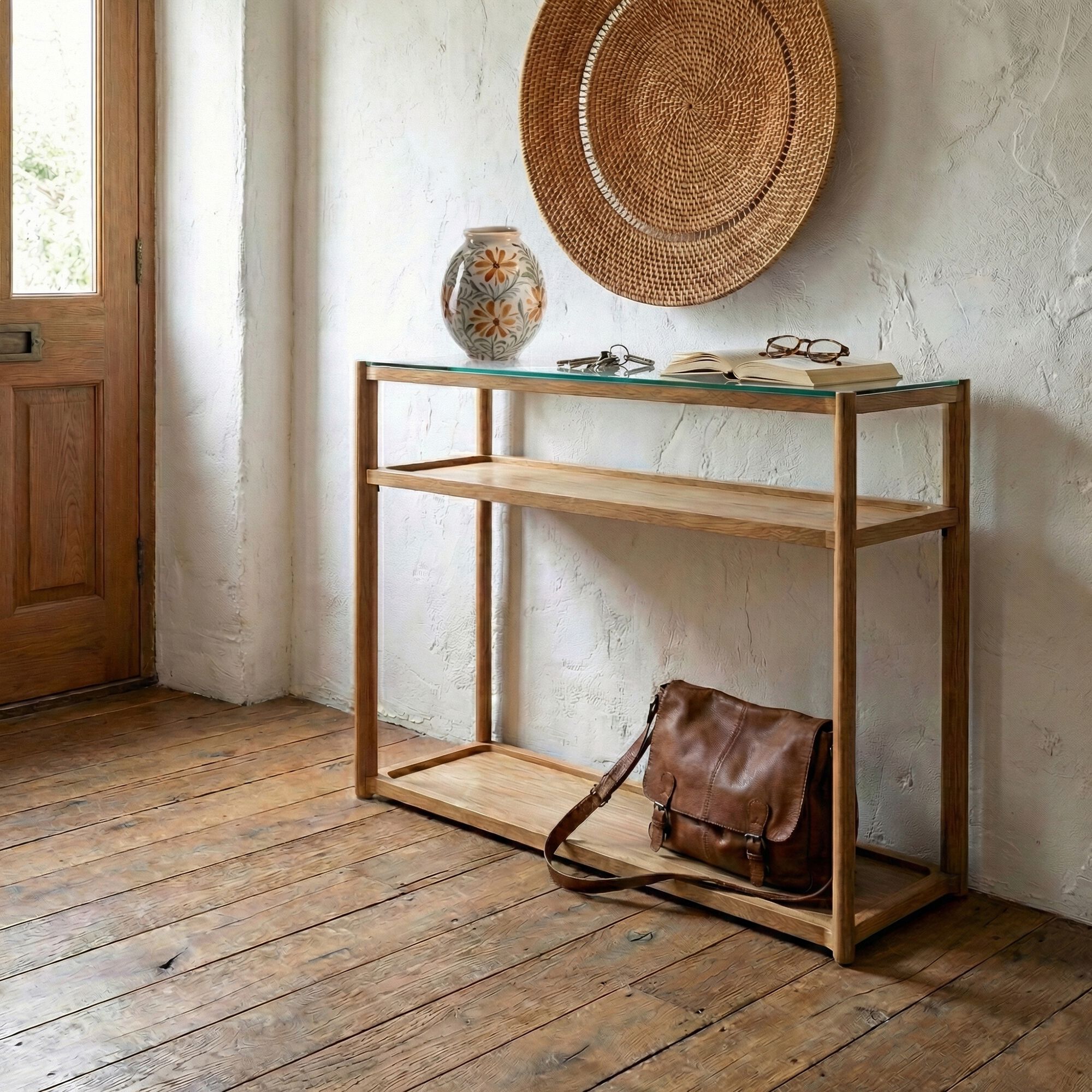 QUADRAT - Console en bois et verre trempé l120cm - bois clair