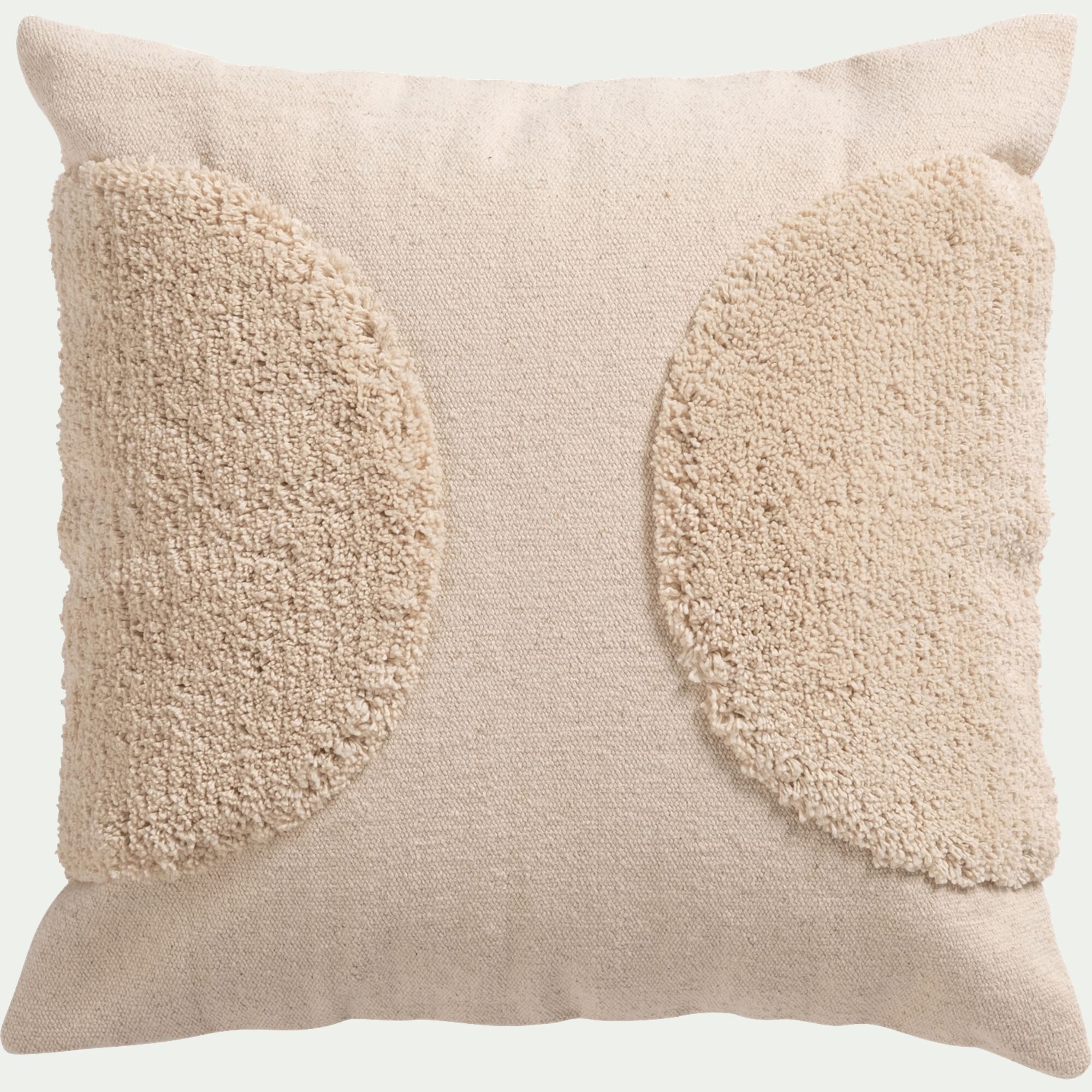 OLLIA - Coussin motifs laineux en coton 45x45cm - naturel