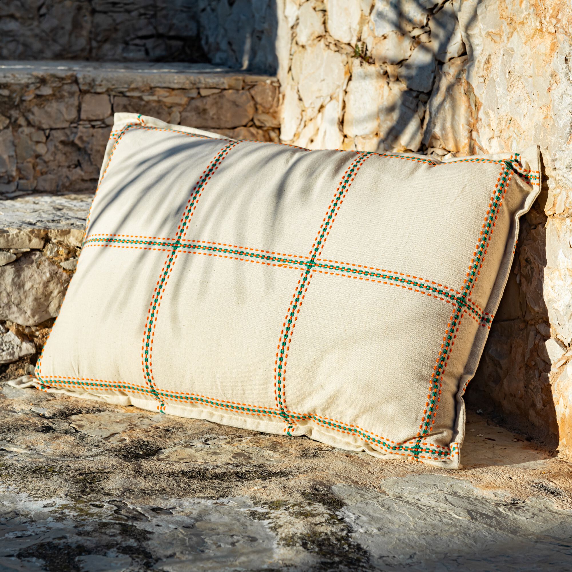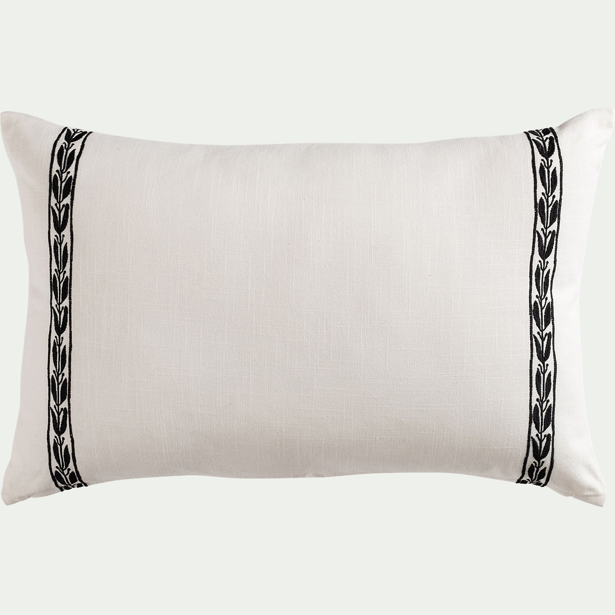 KISSOS - Coussin à frise brodée en coton 45x45cm - blanc