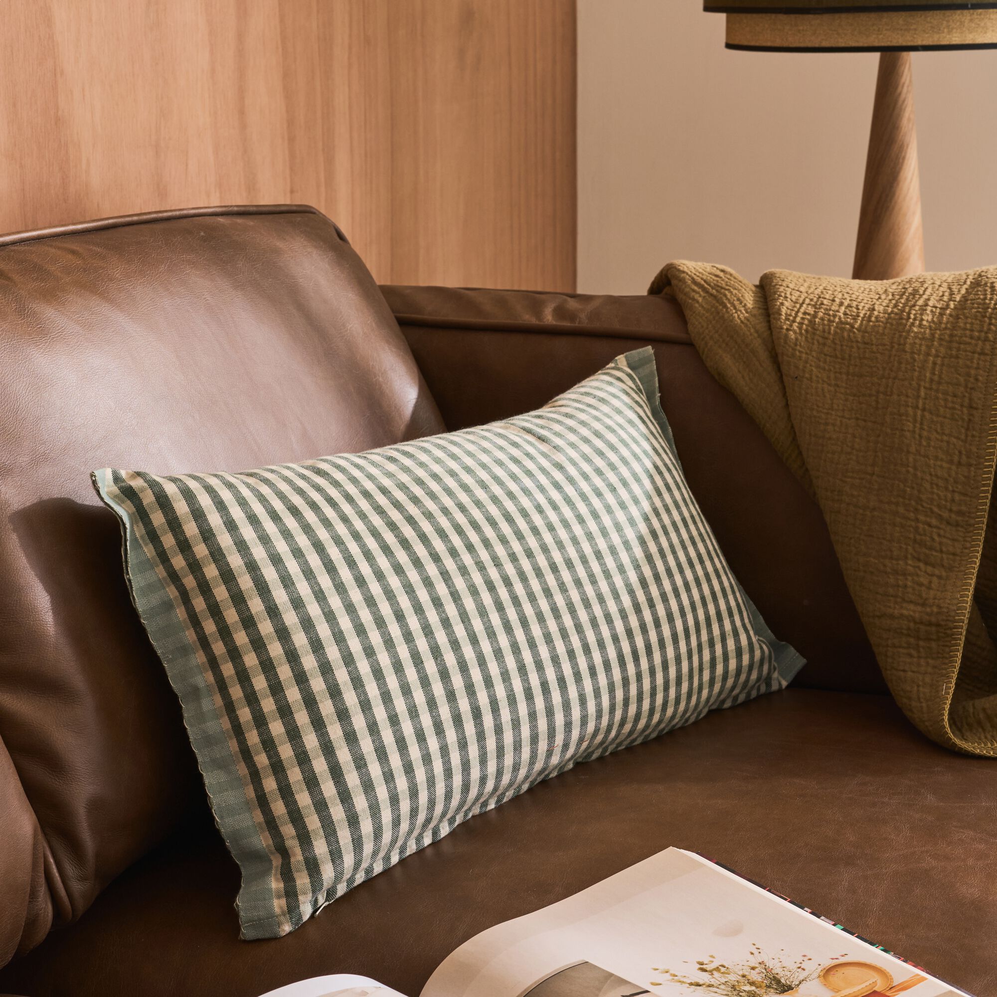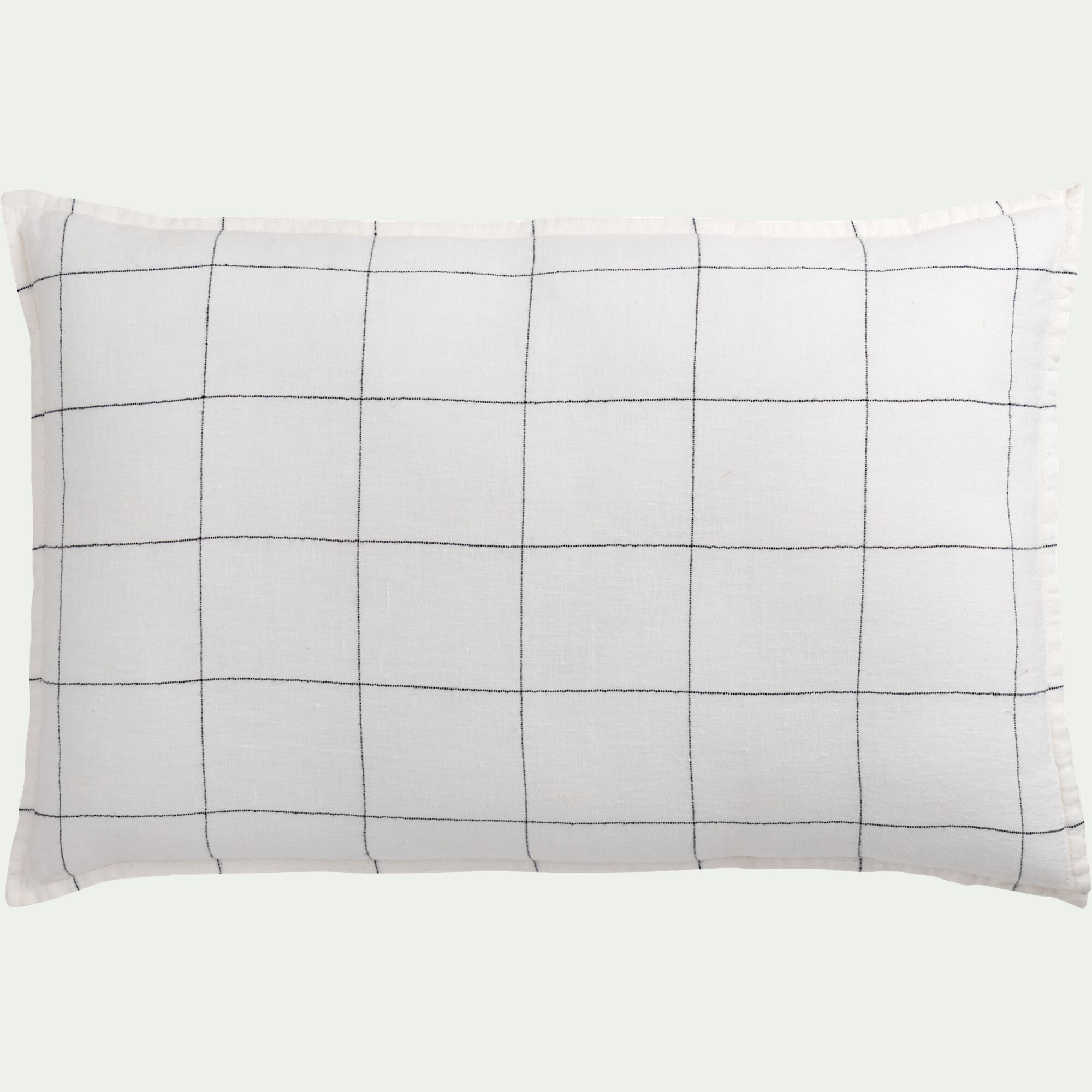 TETRA - Coussin à carreaux en lin 40x60cm - blanc