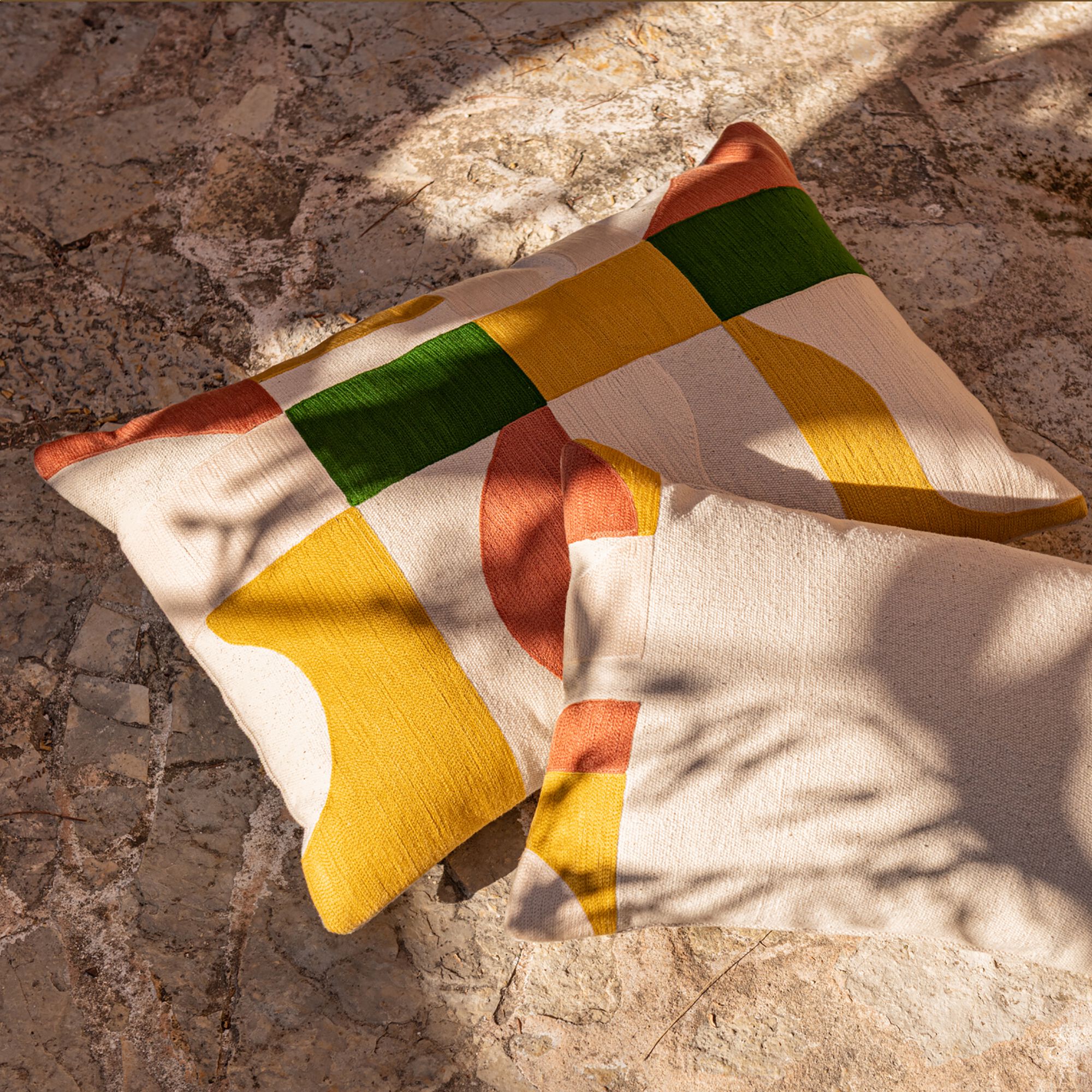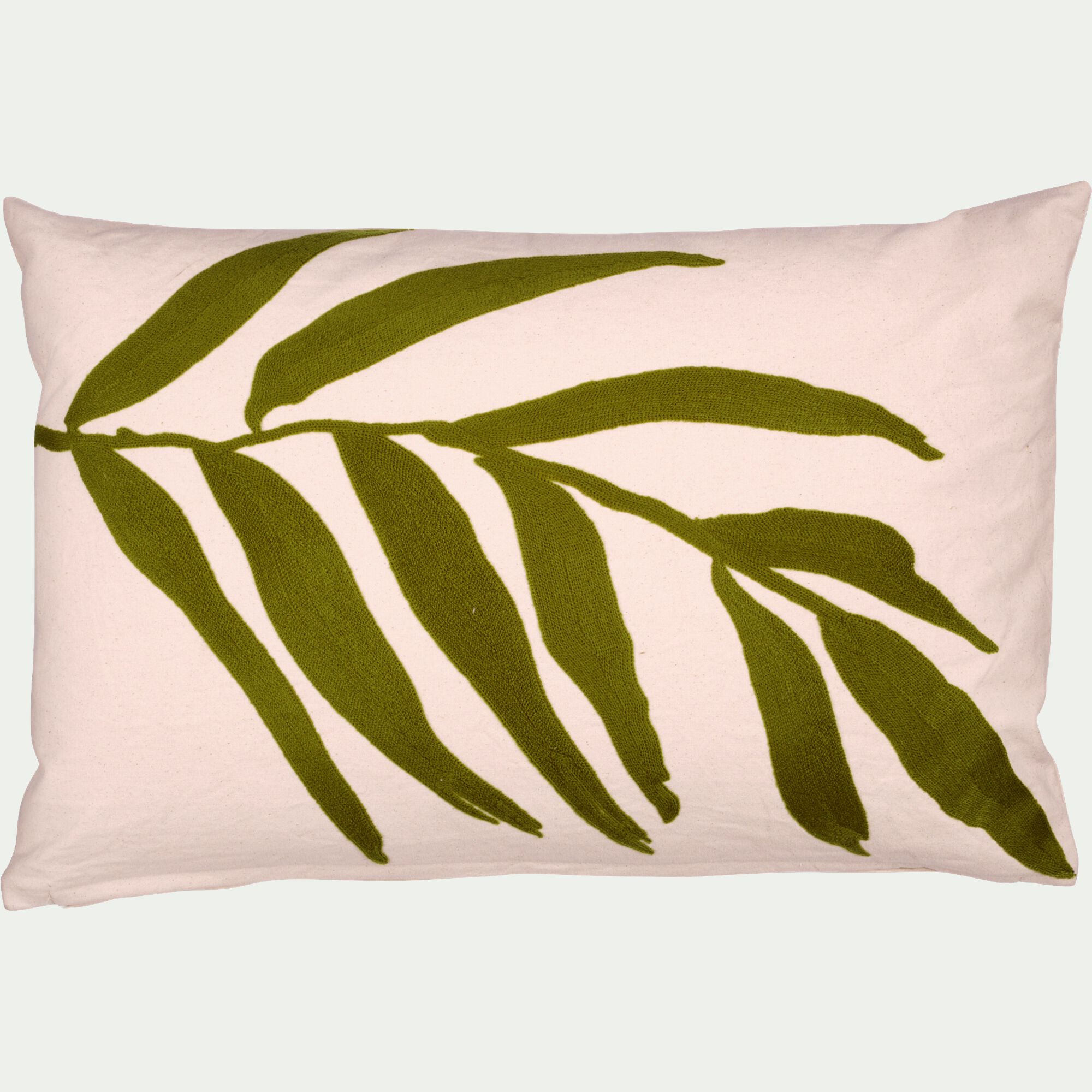 FOGLIA - Coussin à broderie végétale en coton 40x60cm - vert