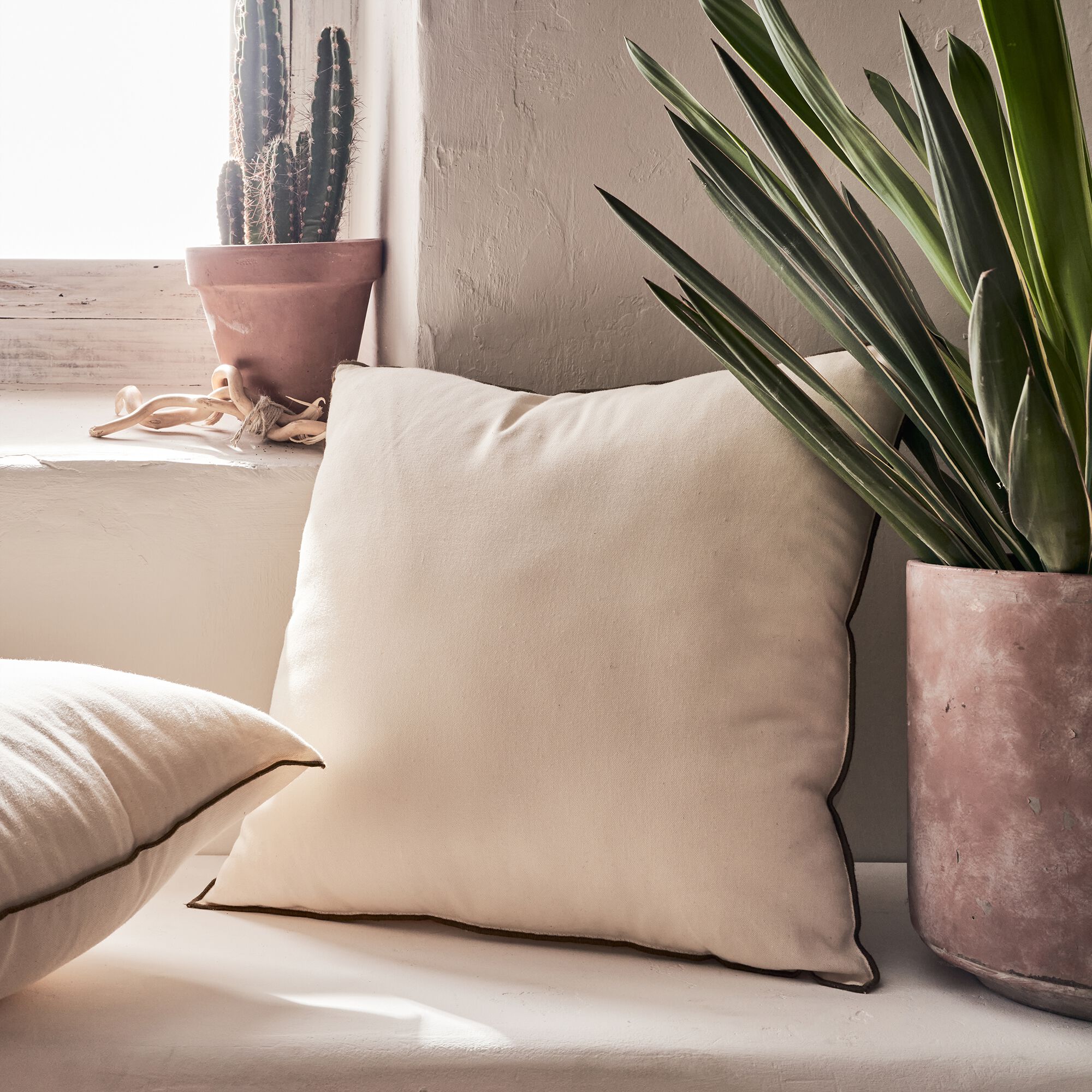 OFIR - Coussin à liseré en coton - beige 45x45cm