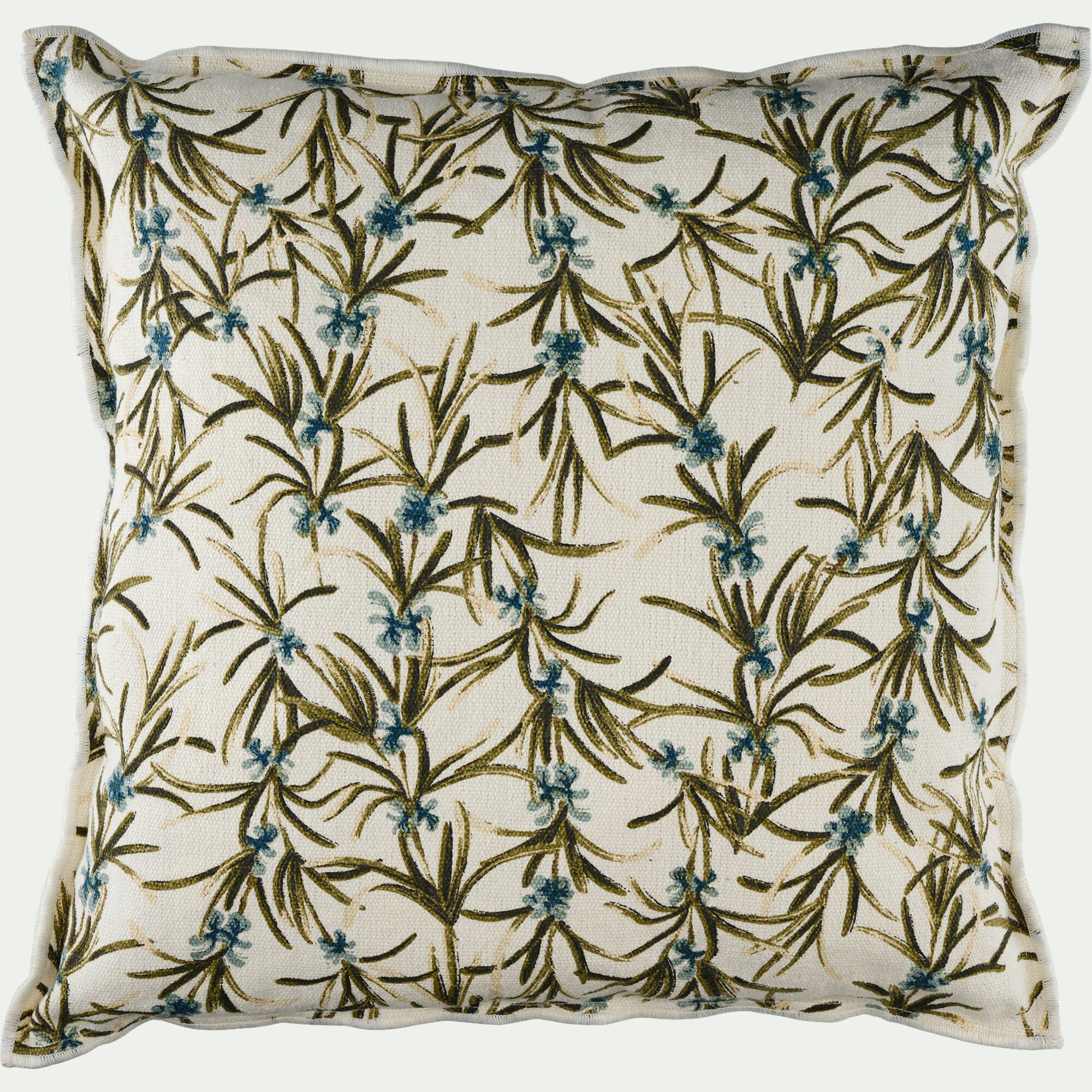 ROMARIN - Coussin motif romarin en coton 45x45cm - blanc