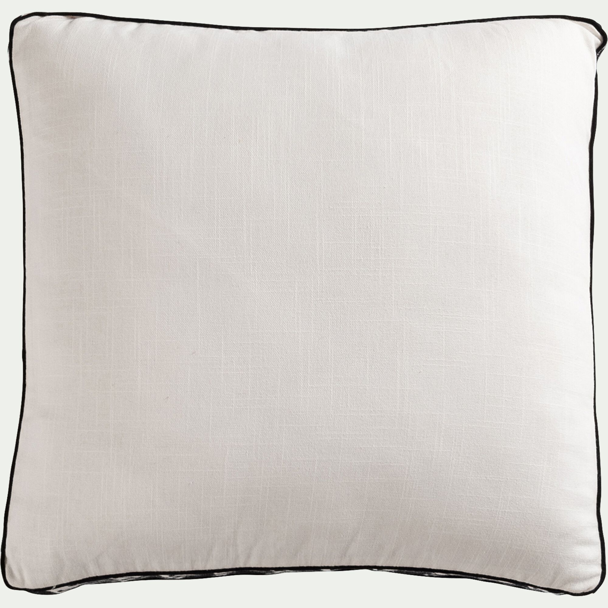 LINH - Coussin motif floral en lin et coton 45x45cm - blanc