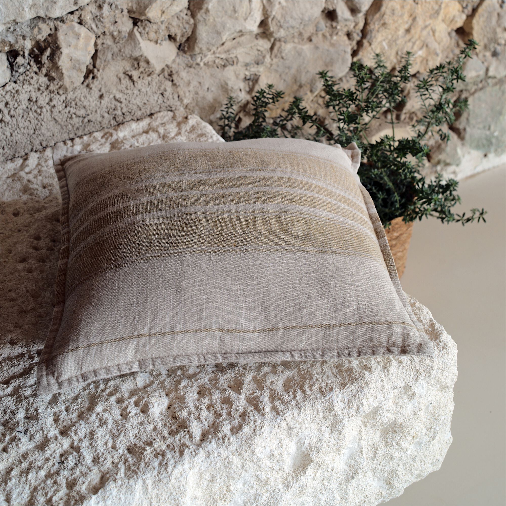 LAURET - Coussin rayé en lin 45x45cm - jaune