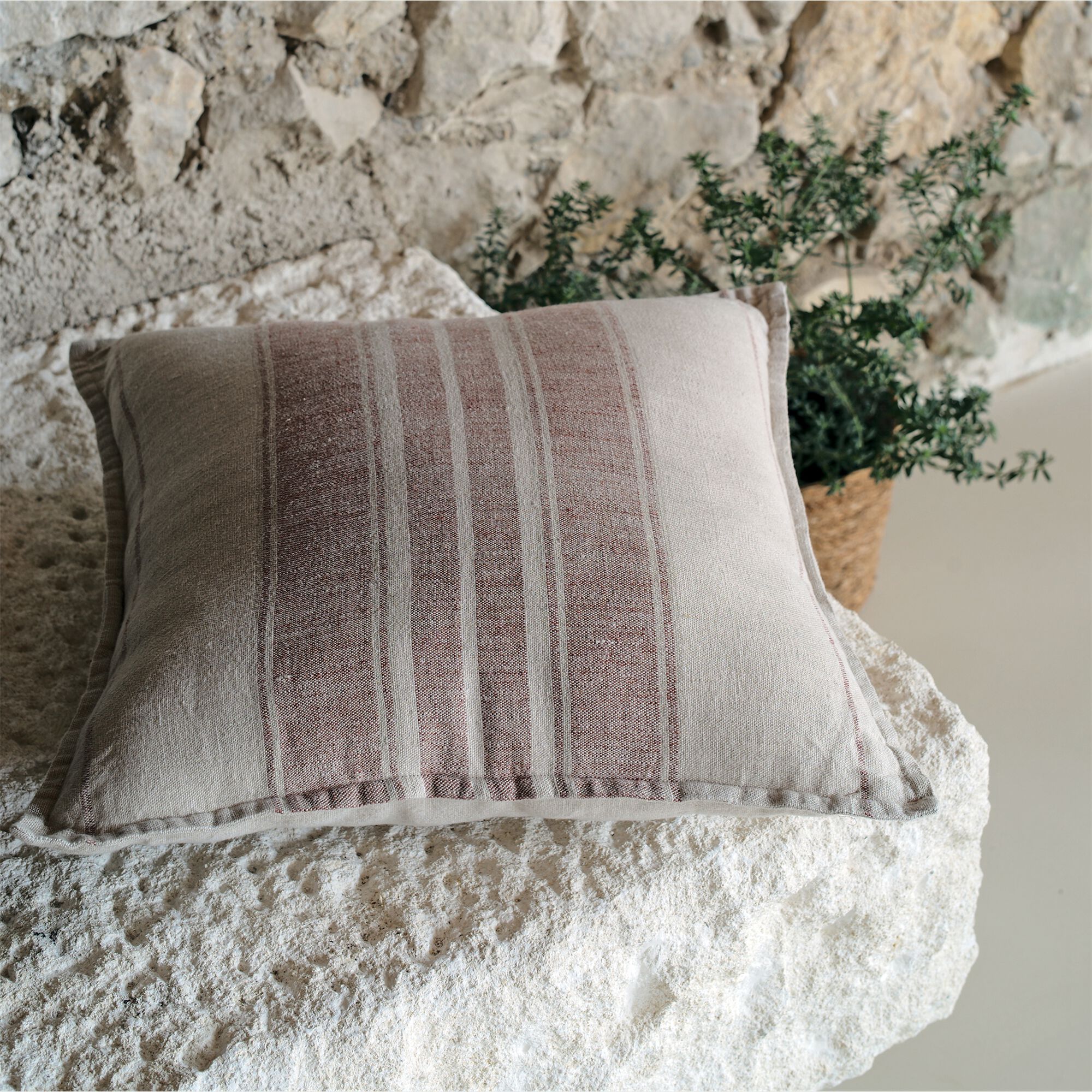 LAURET - Coussin rayé en lin 45x45cm - rouge