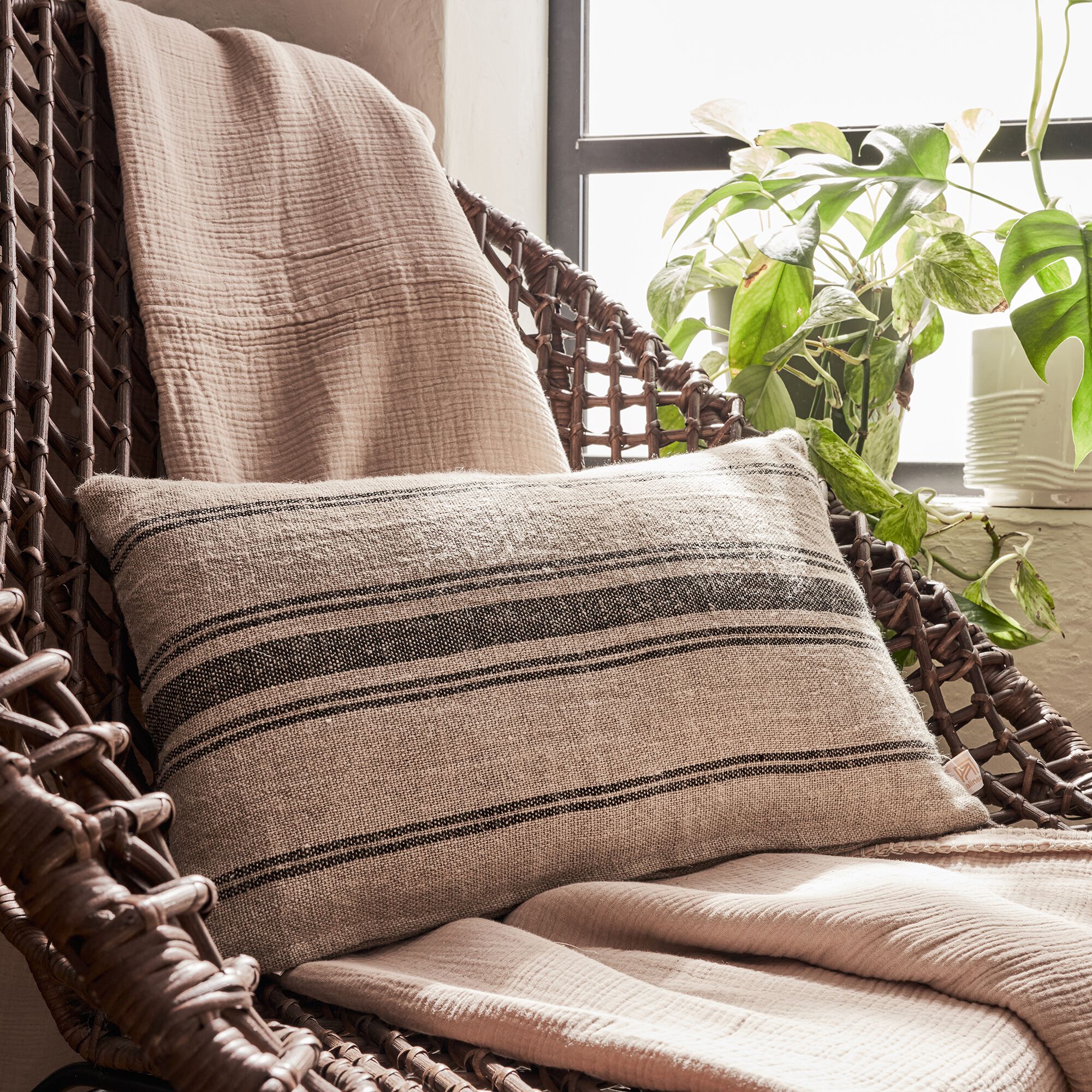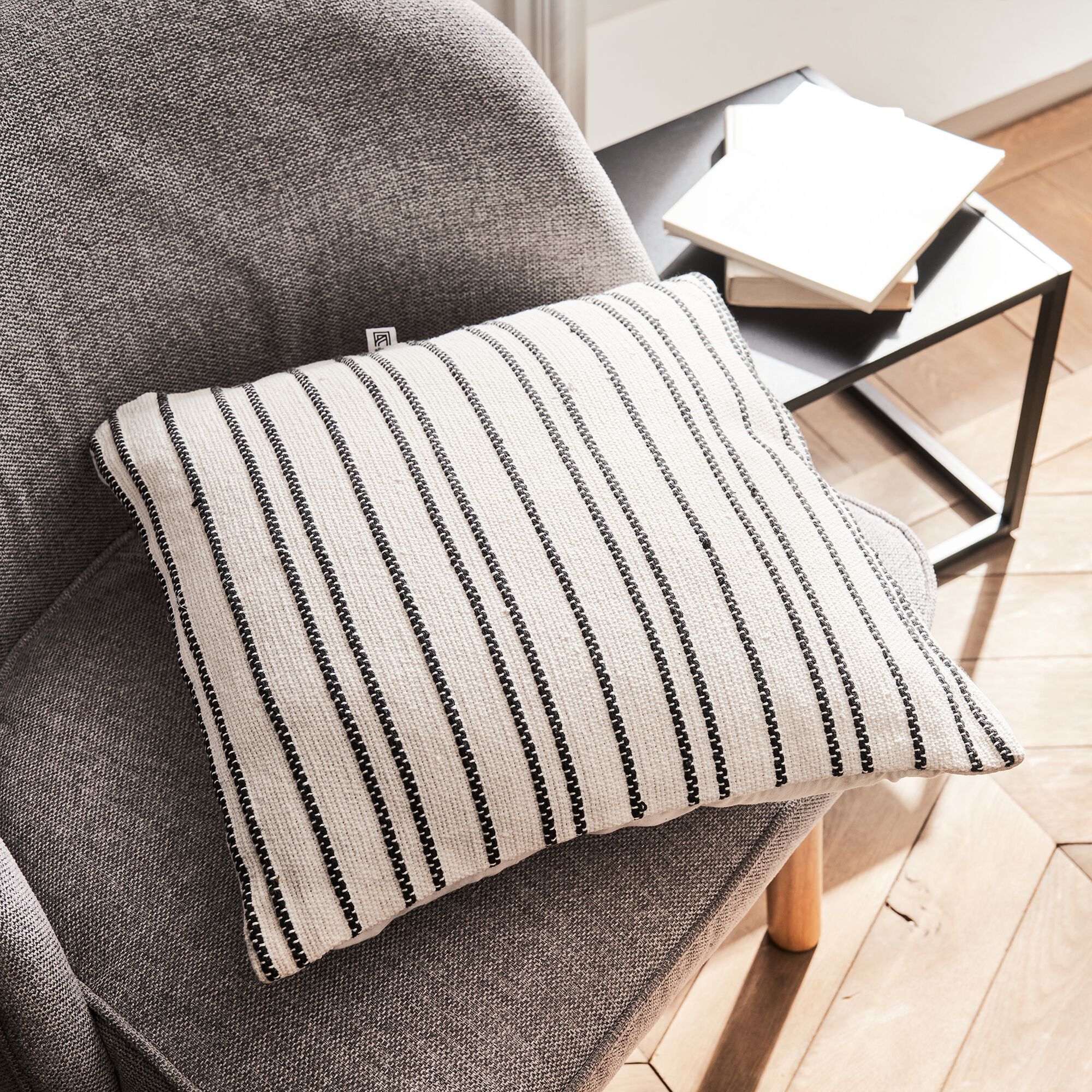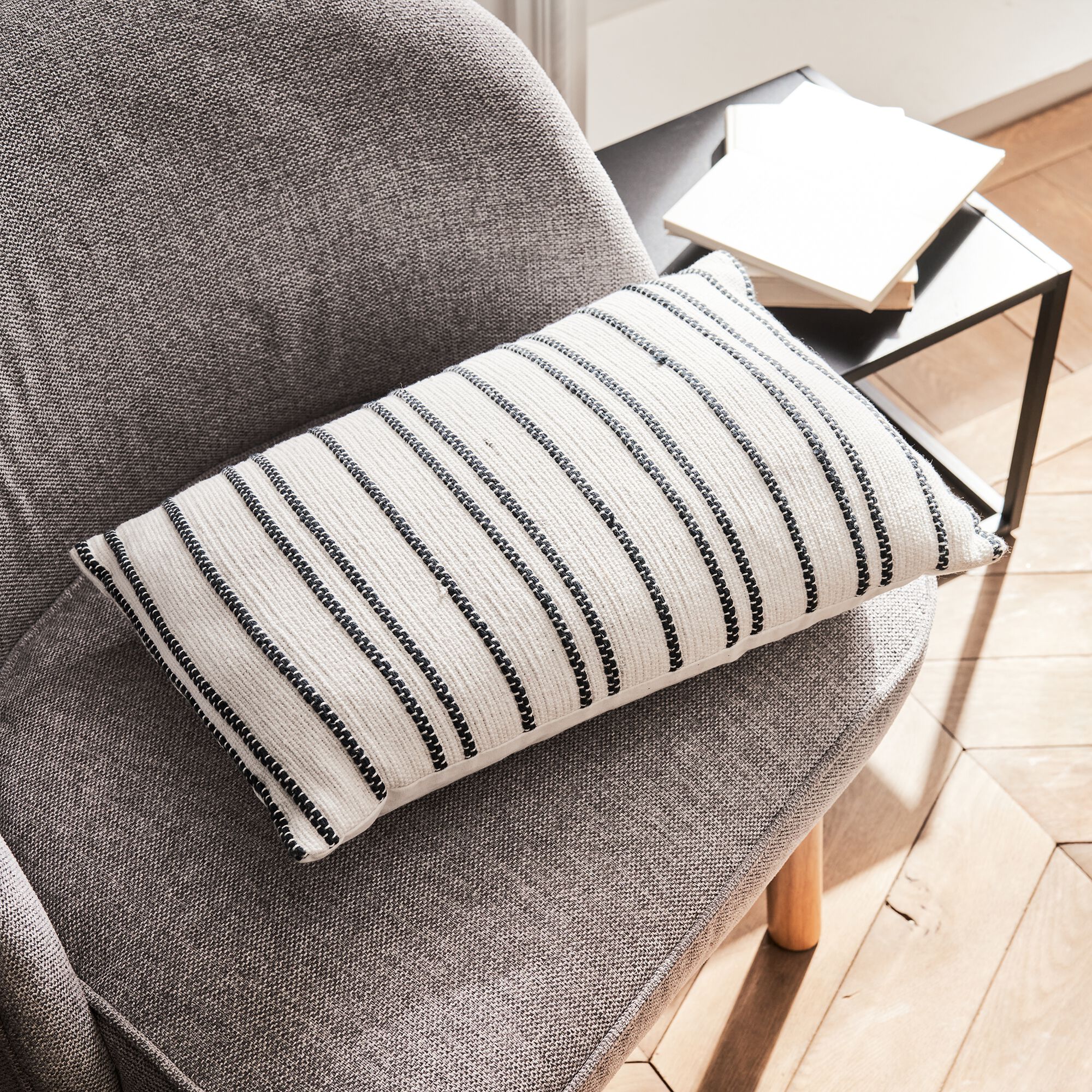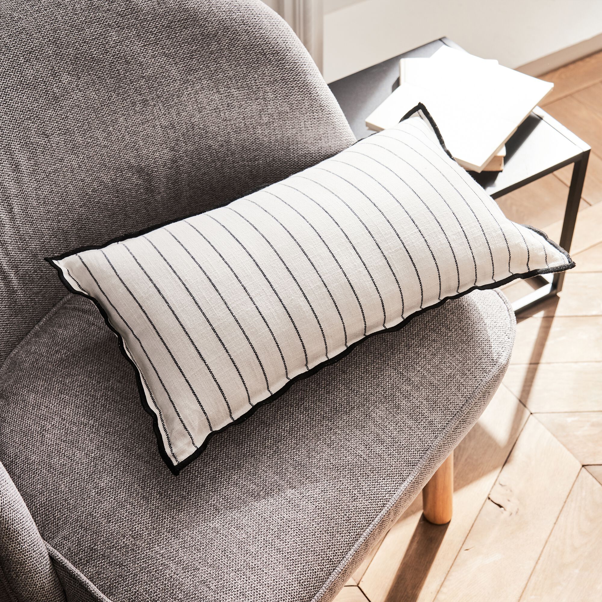 OASIS - Coussin à rayures en lin 30x50cm - naturel et noir
