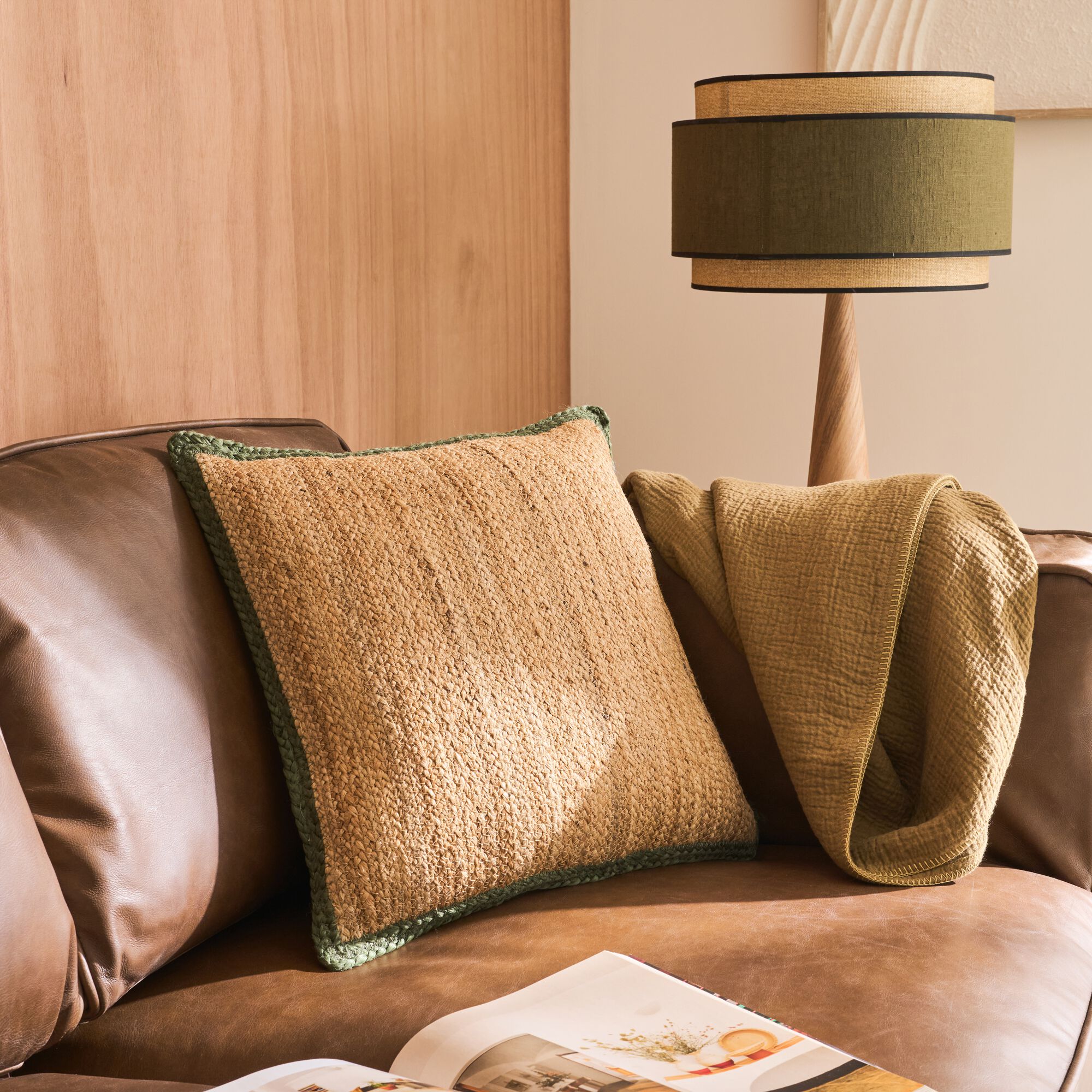 SOLACE - Coussin en laine et coton 45x45cm - marron écorce