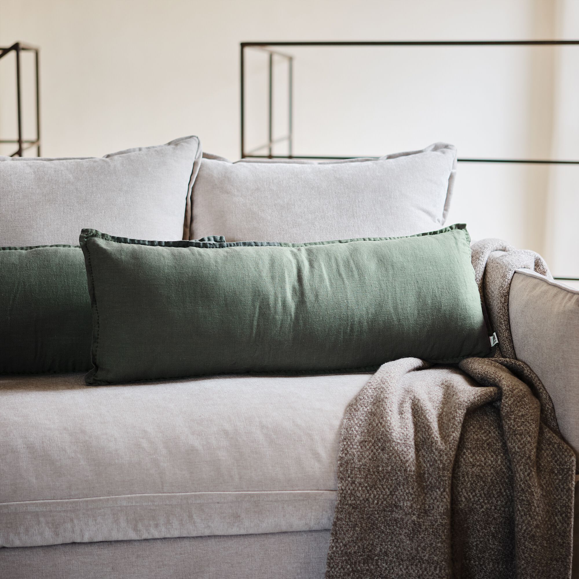 VINON - Coussin en lin lavé 30x80cm - vert cèdre