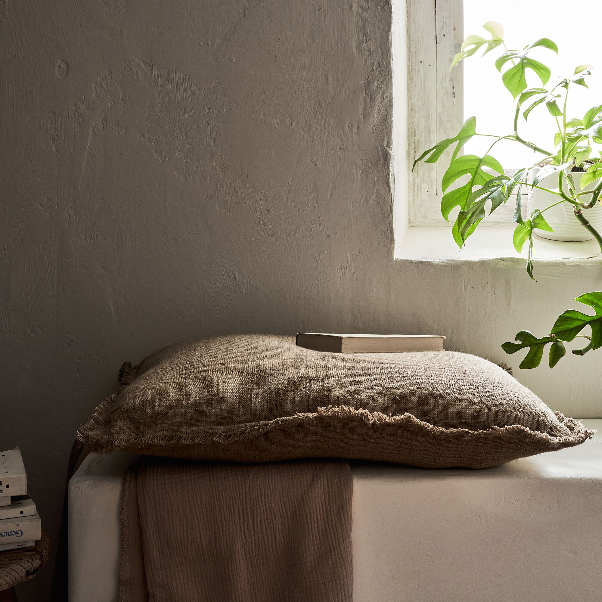 TANTA - Coussin frangé en lin 50x70cm - naturel