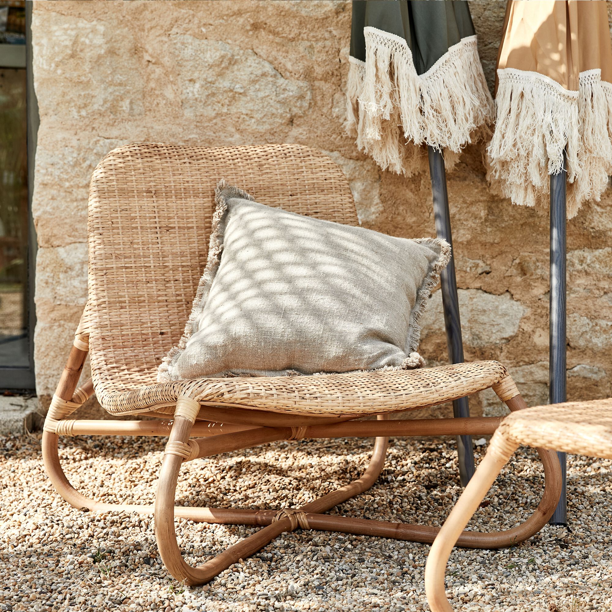 TANTA - Coussin frangé en lin 45x45cm - naturel