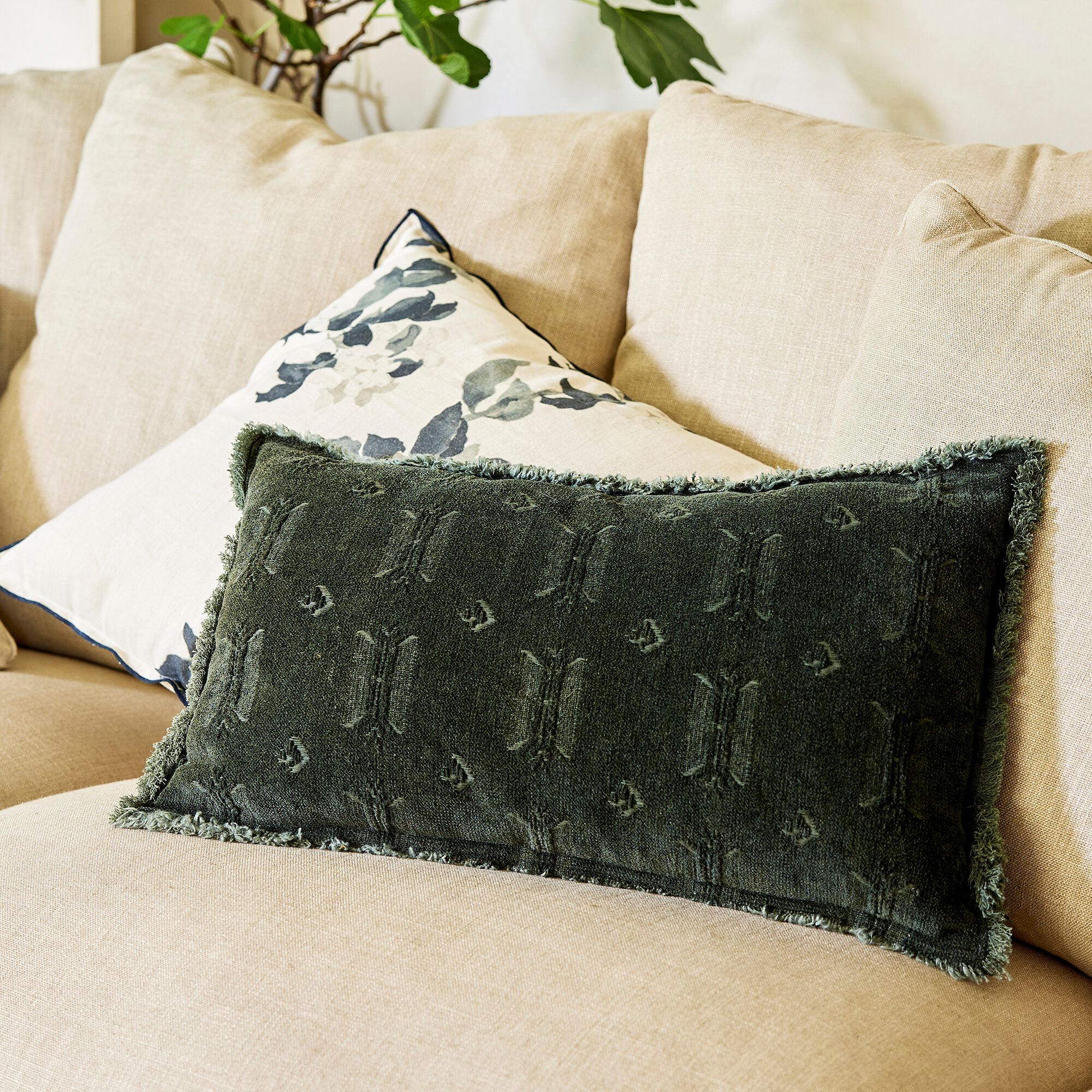ALBAH - Coussin frangé en velours 30x50cm - vert cèdre