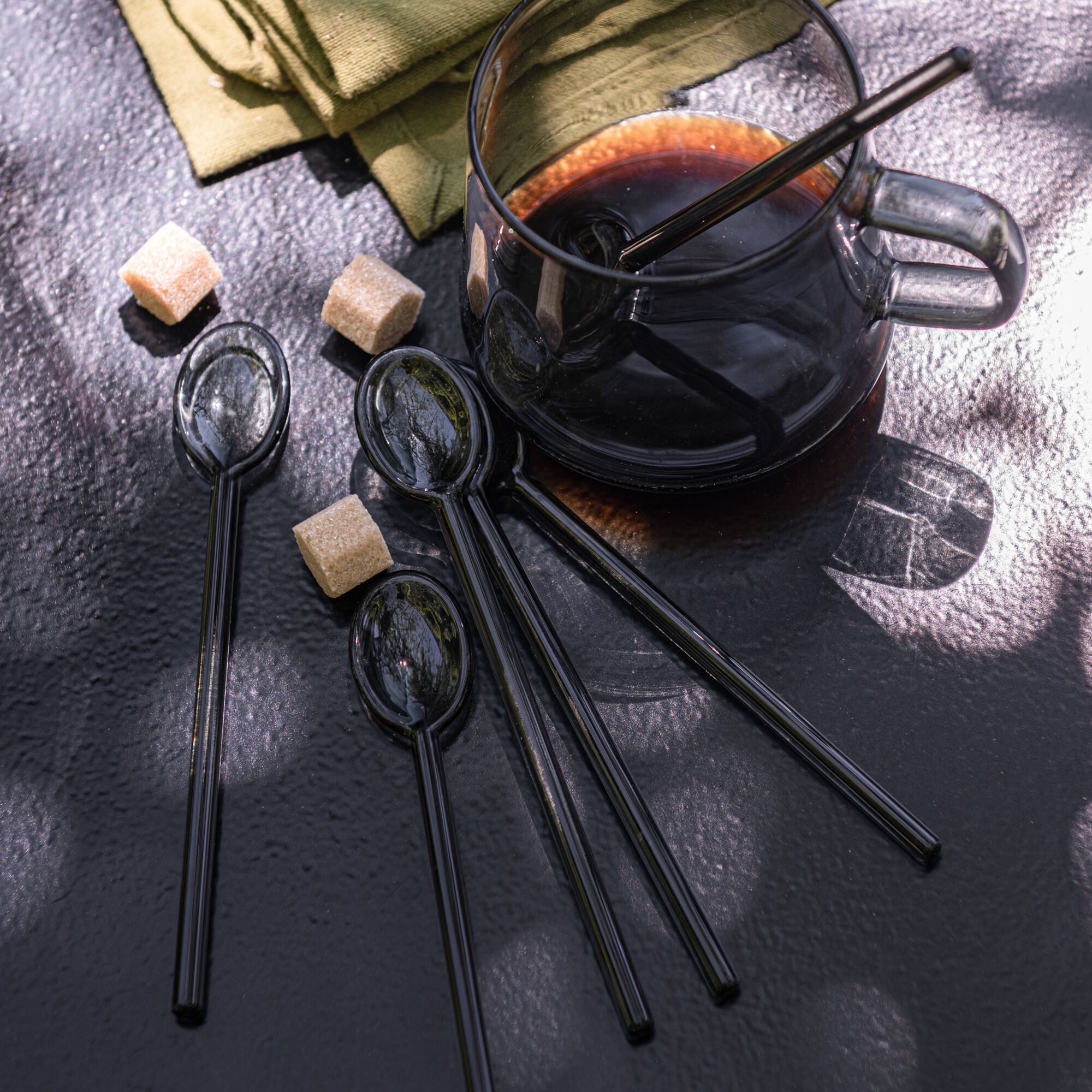 IGGY - Lot de 6 cuillères à latte en verre - noir