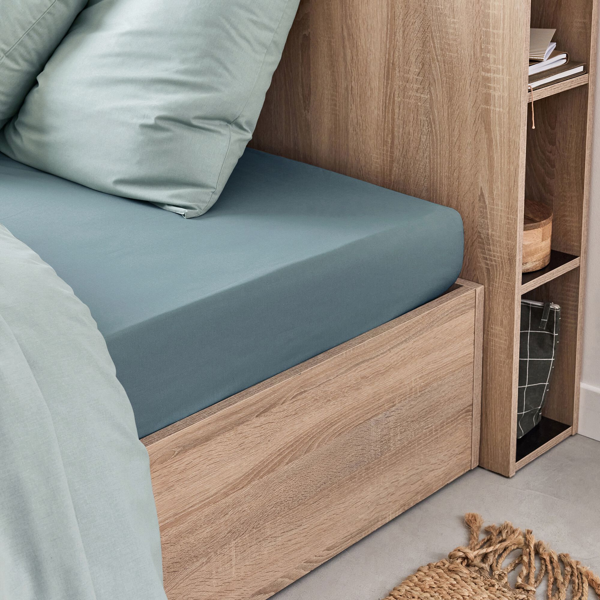 EOLI - Drap housse en coton 90x200cm B30cm - bleu calabrun