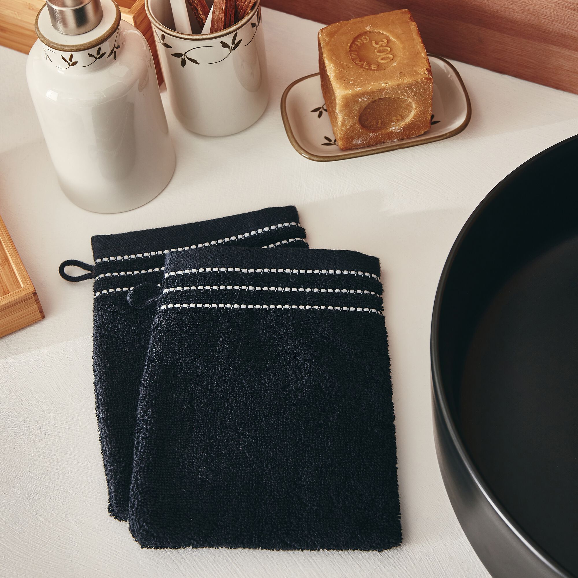 RHODES - Lot de 2 gants de toilette en coton - noir