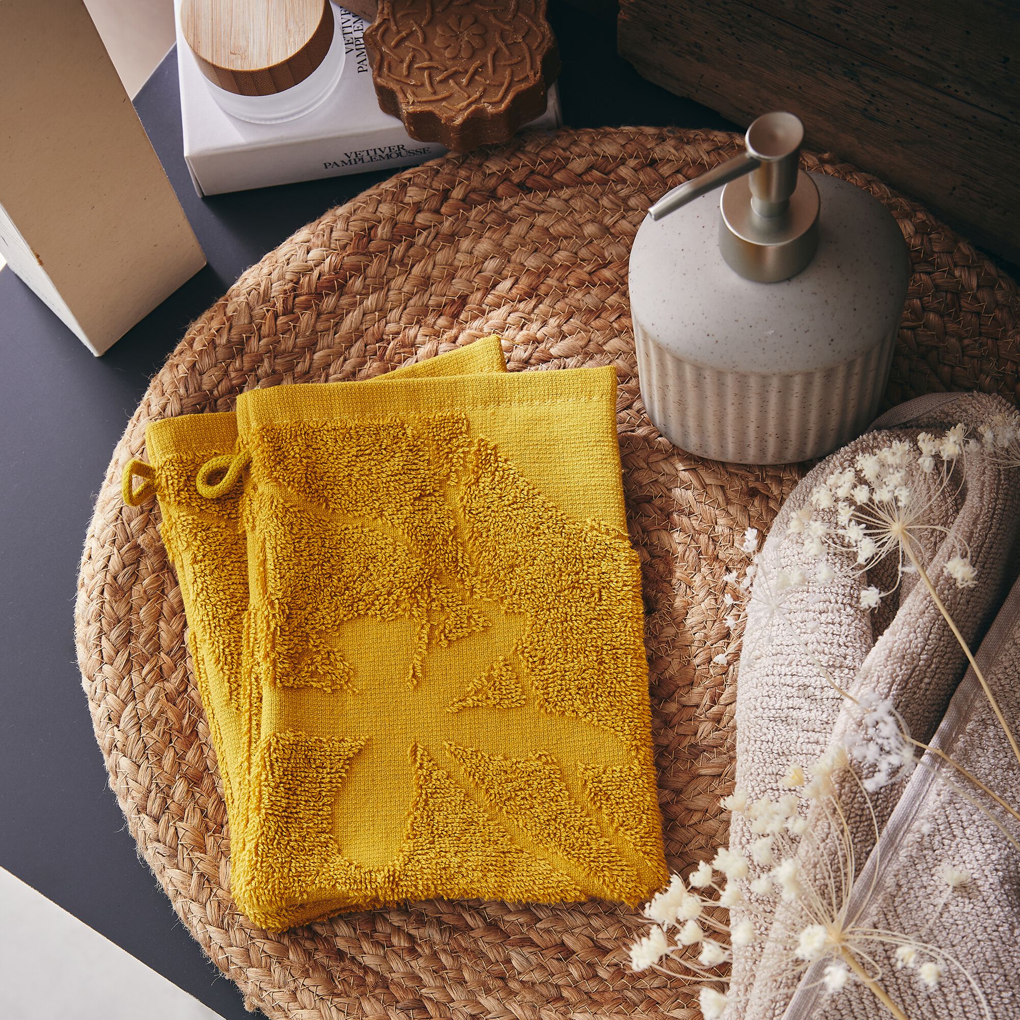 RYAD - Lot de 2 gants de toilette en coton - jaune argan