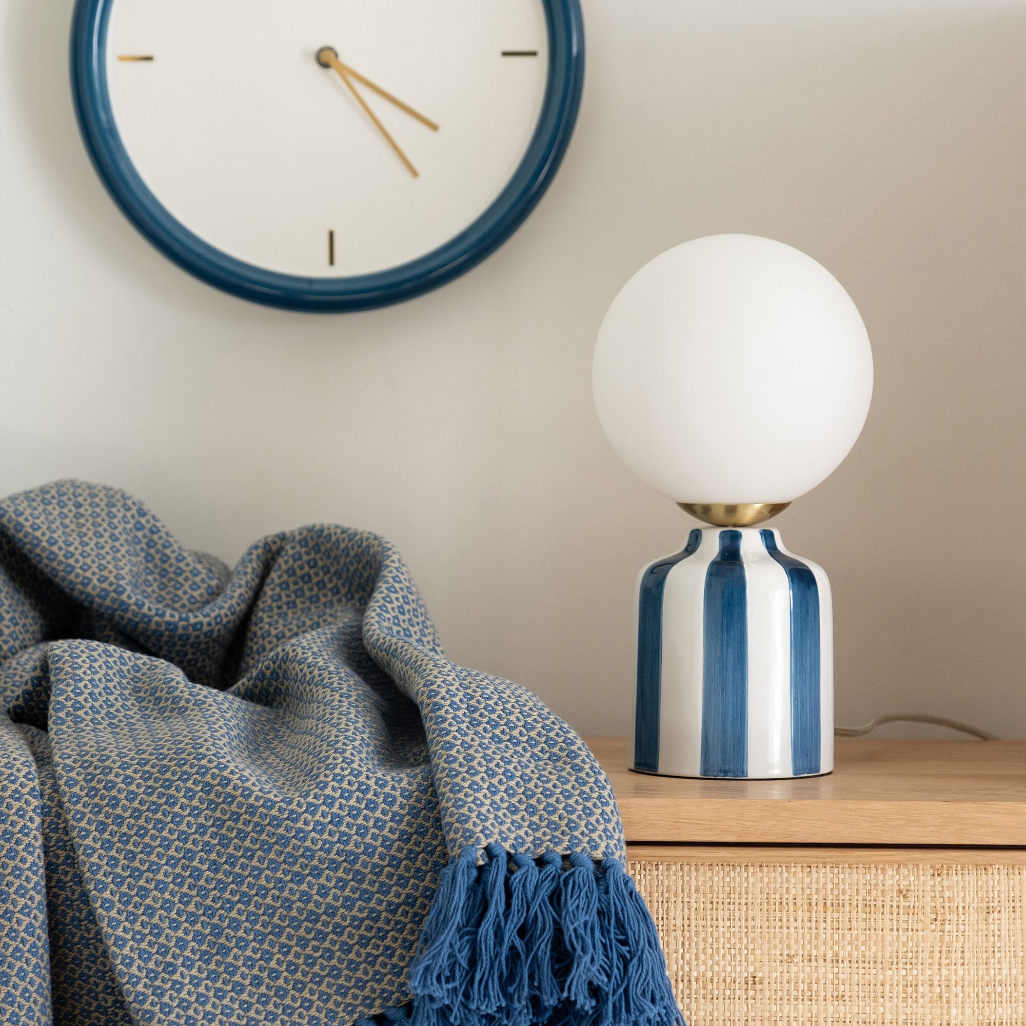 HELIOS - Lampe à rayures en céramique - bleu et blanc