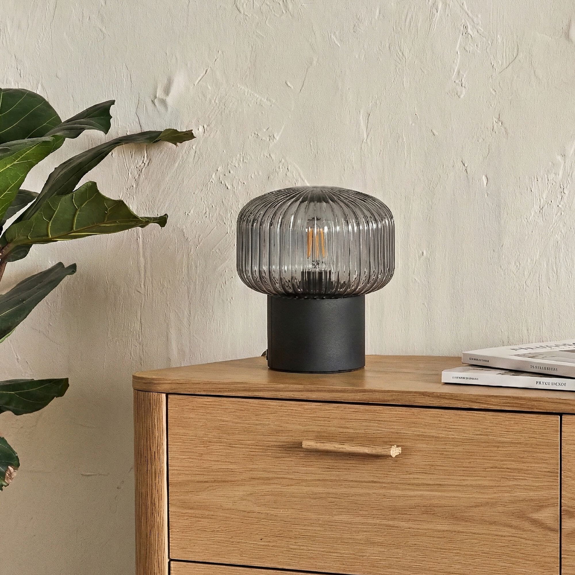 SUENO - Lampe de table en verre et acier H17cm - gris