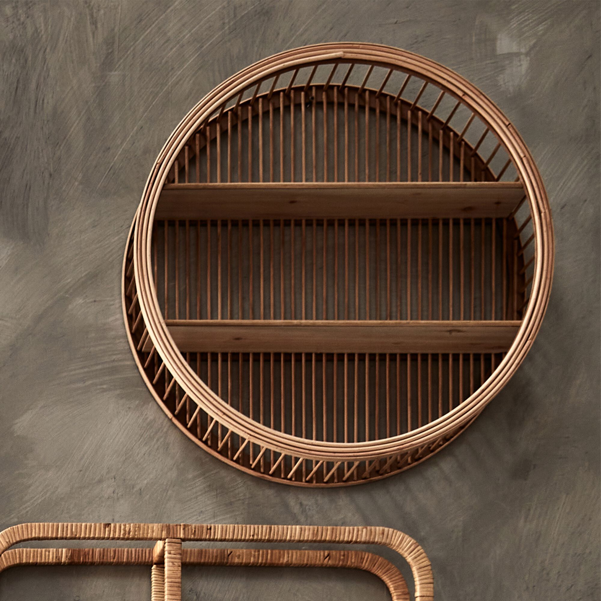 PICHOLINE - Étagère 3 tablettes en bois et rotin - bois clair