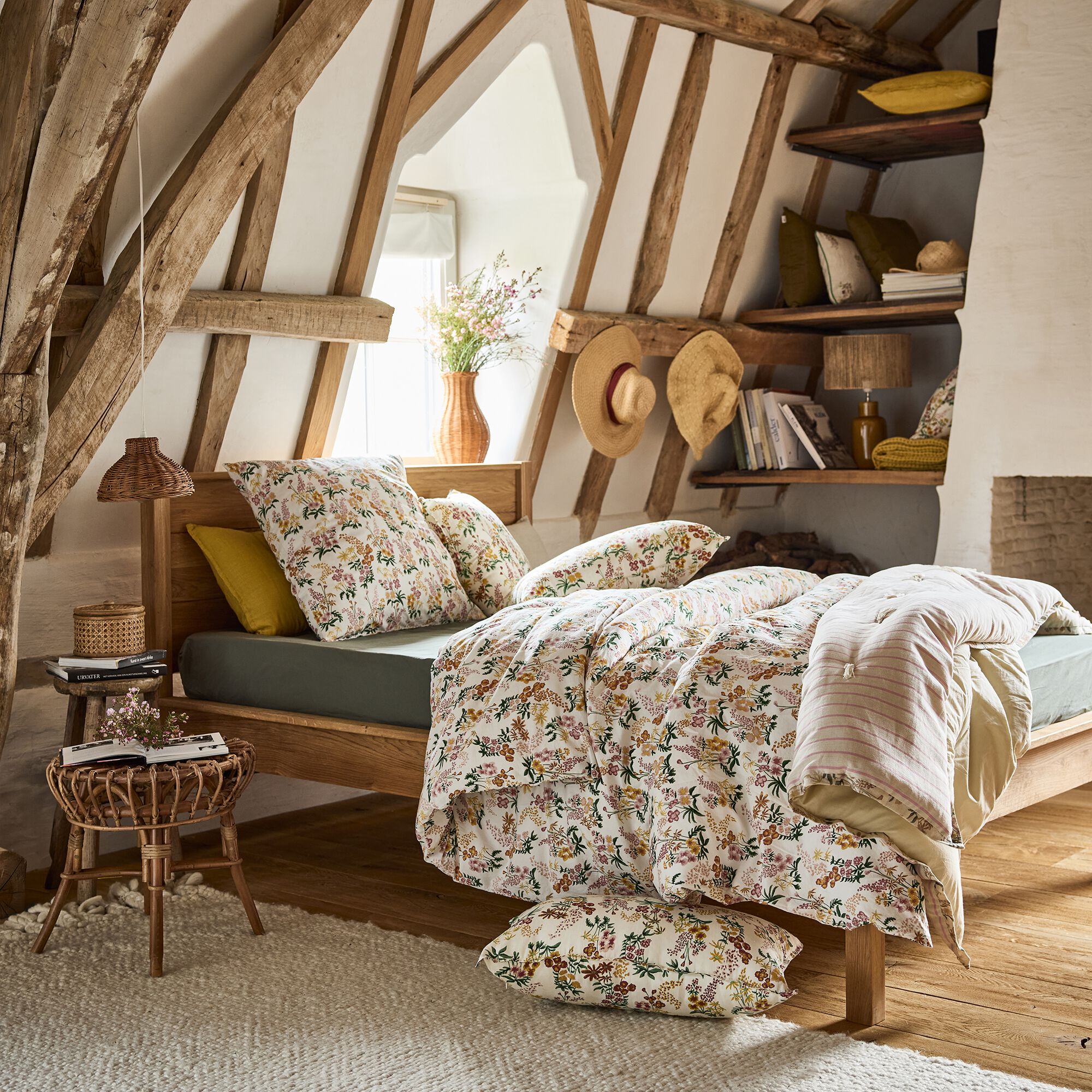 VENCE - Drap housse en lin lavé 140x200cm B28cm - vert cèdre
