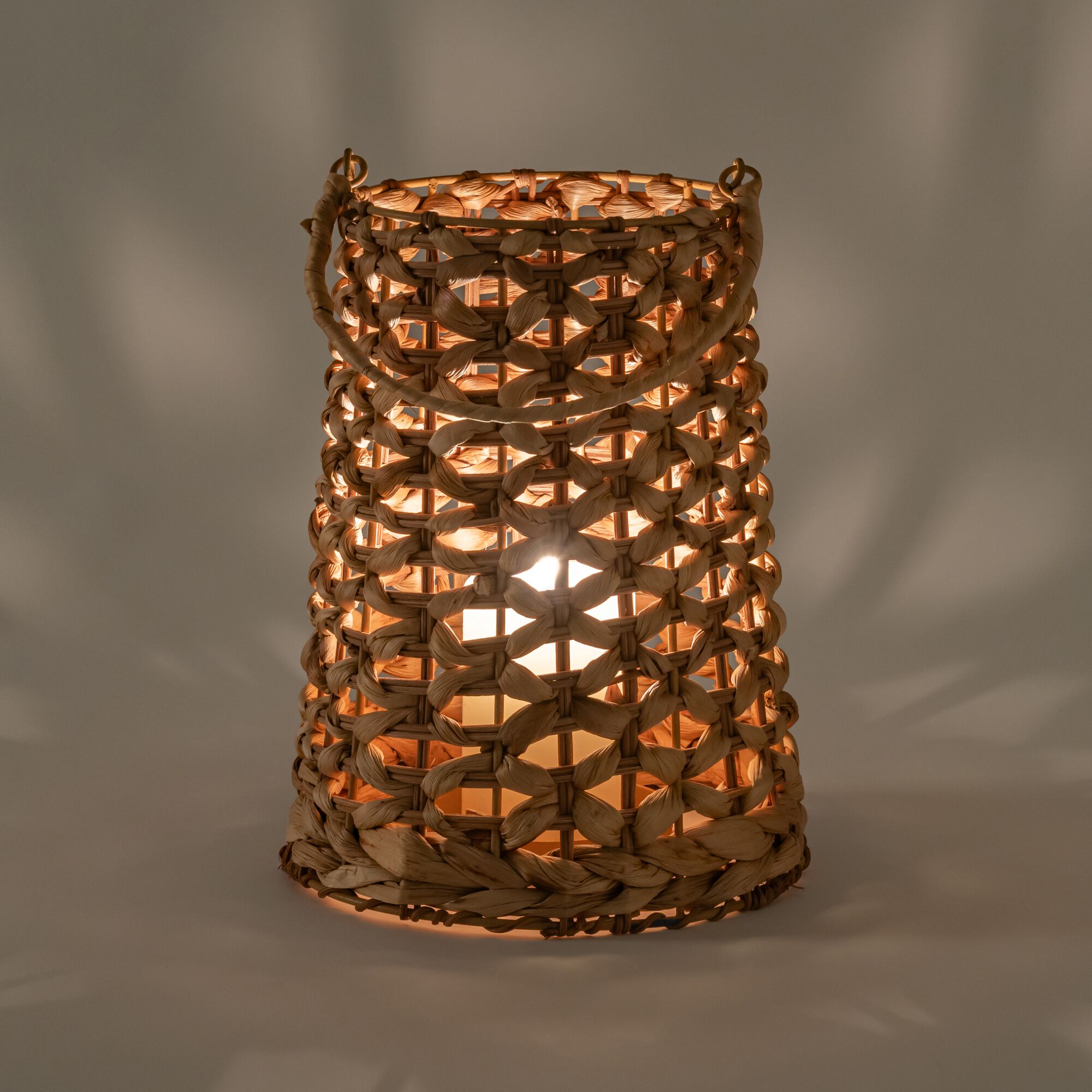 GALY - Lanterne en jacinthe d'eau et rotin H27cm - naturel