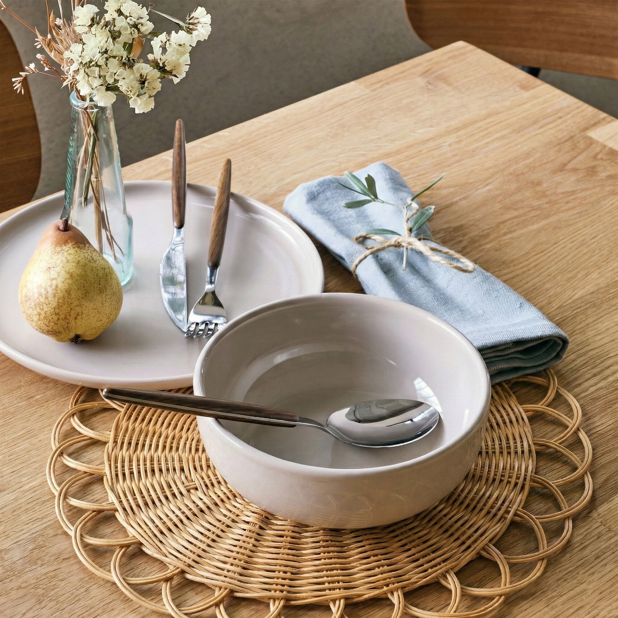 SONA - Chemin de table en paille et coton - naturel 50x150cm