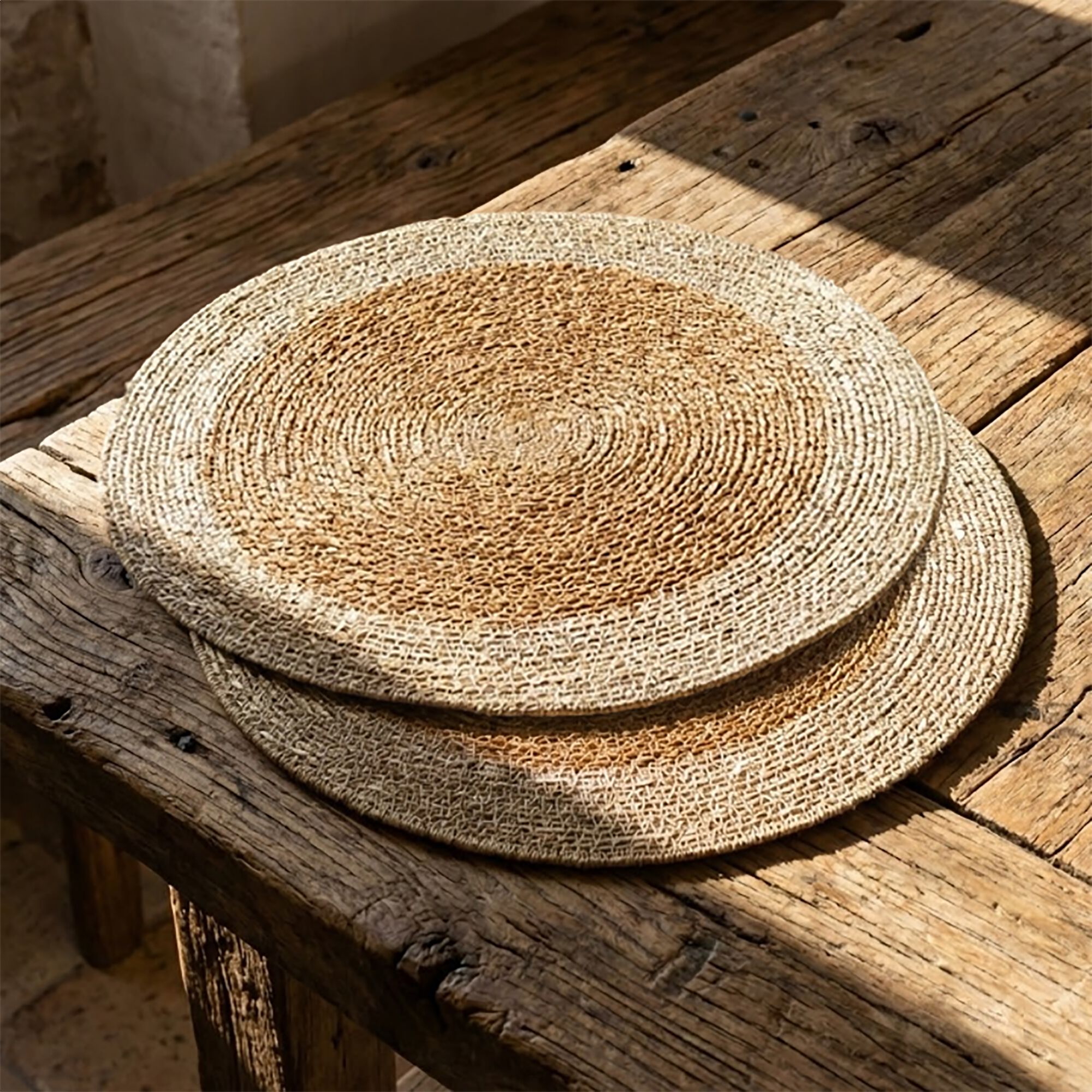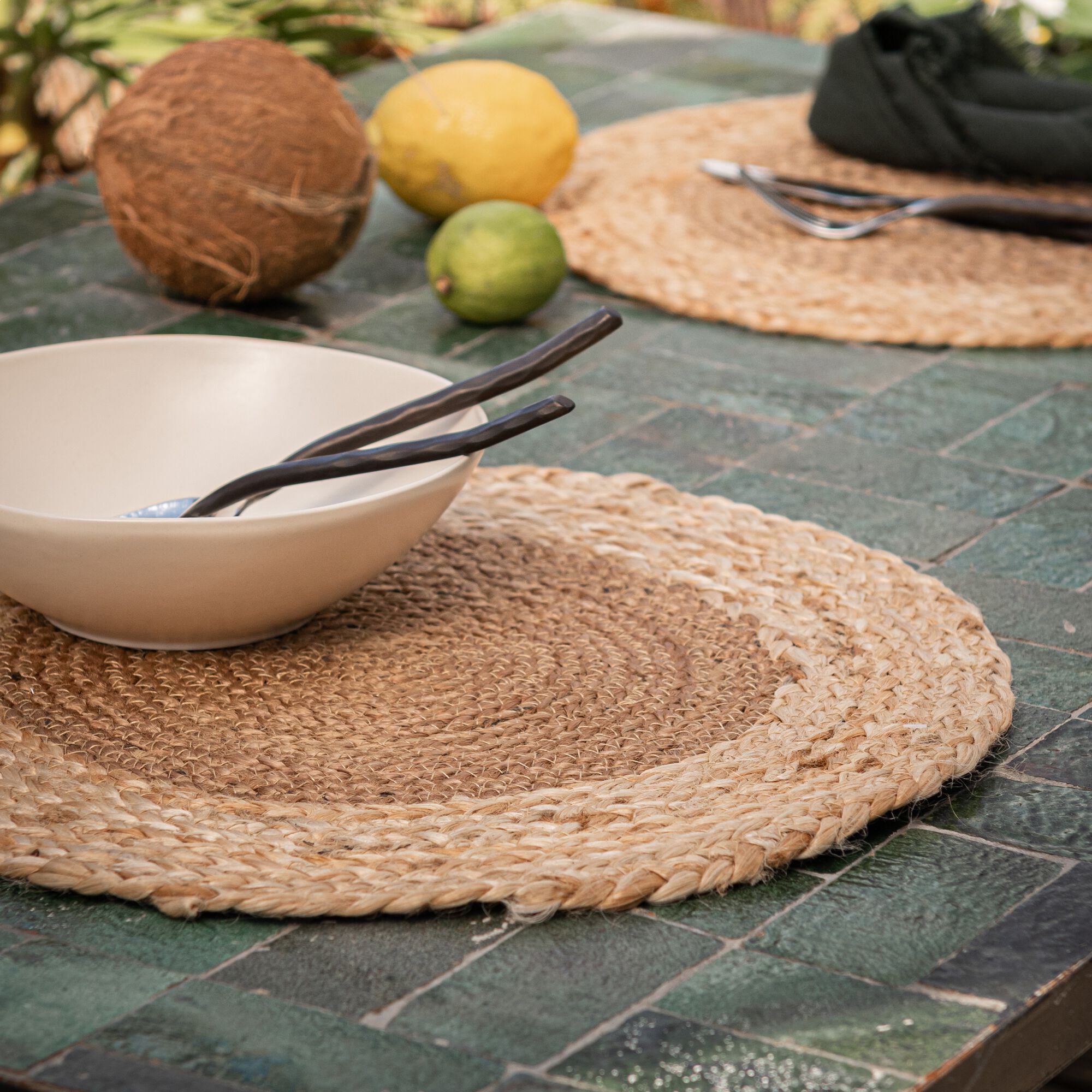 TANET - Lot de 2 sets de table ronds en jute - naturel D38cm