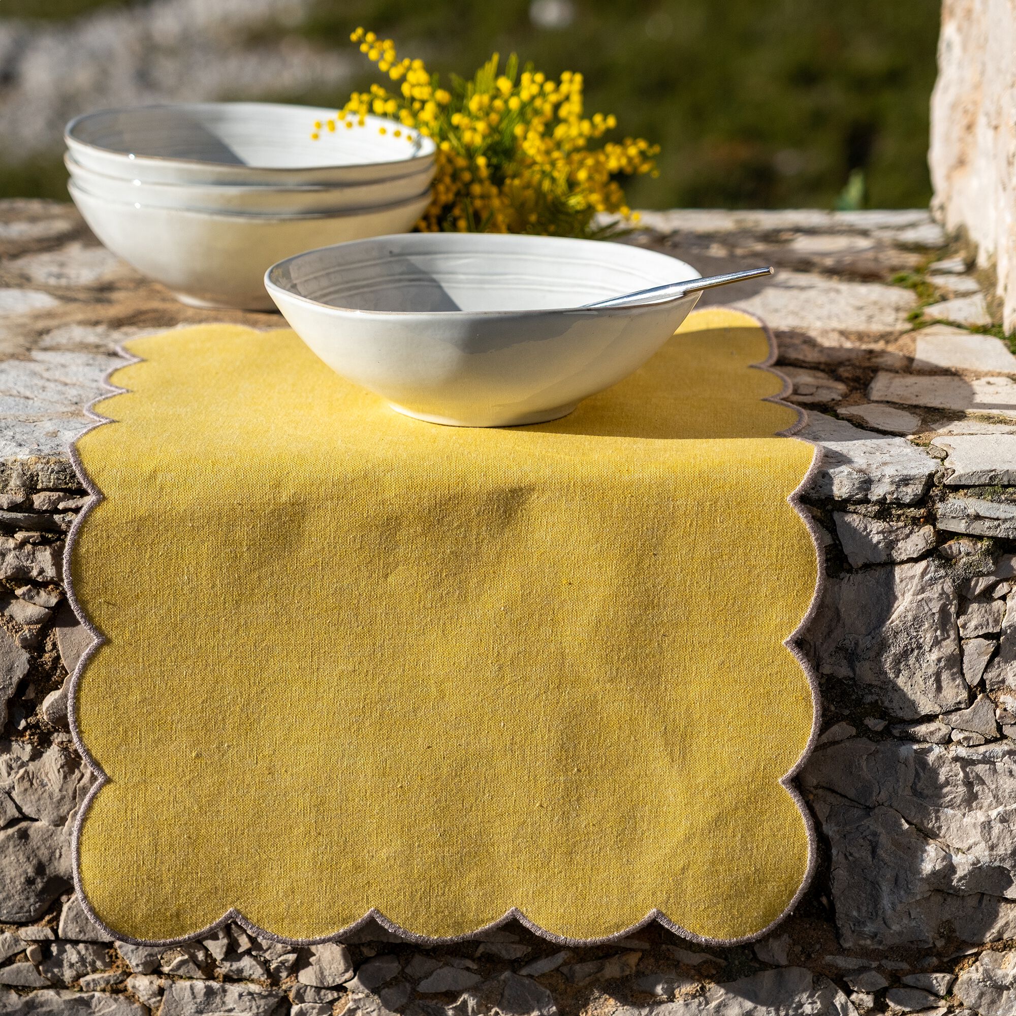 VINON - Chemin de table en lin lavé 50x150cm - naturel