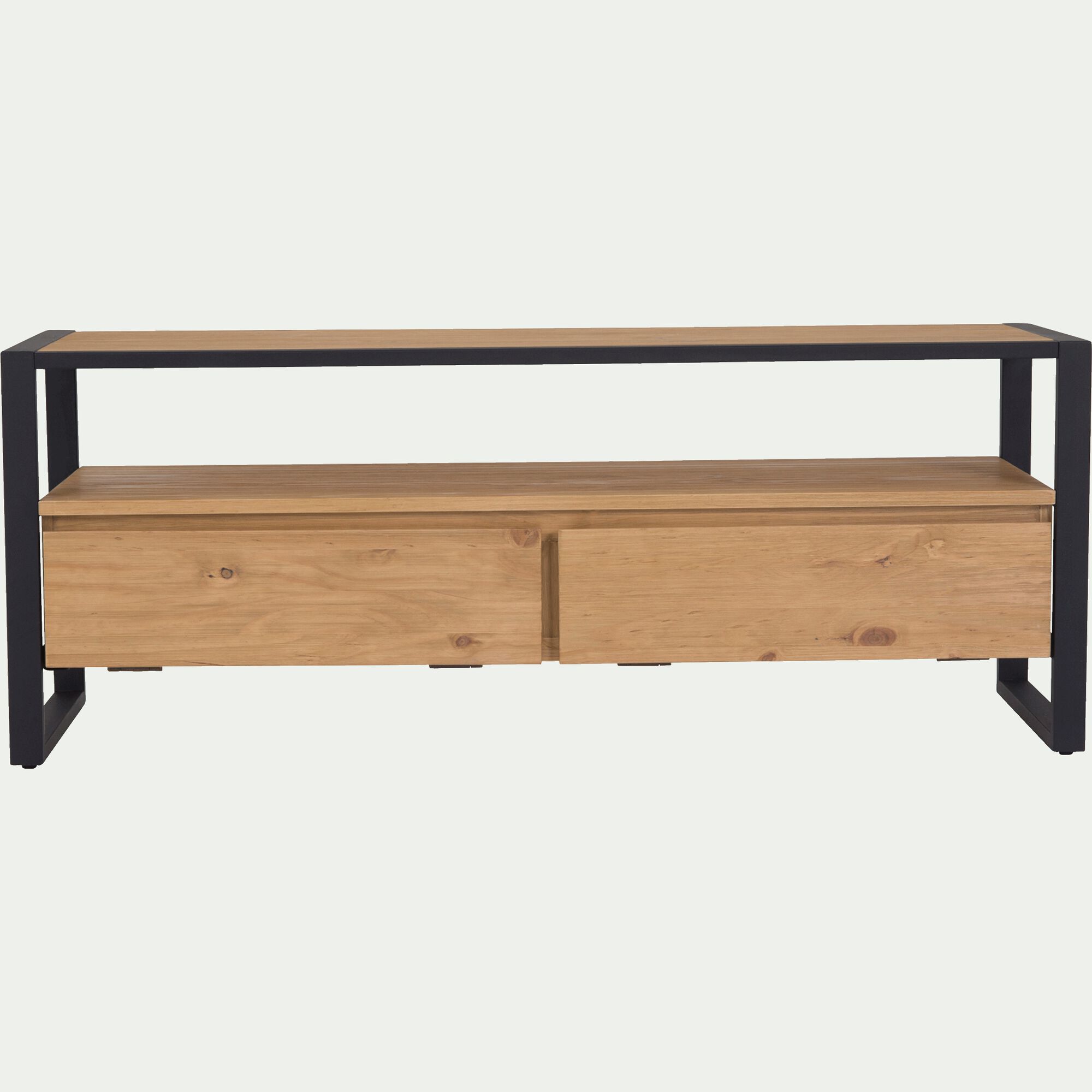 ENDOUME - Meuble TV en pin massif et métal L130cm - bois clair