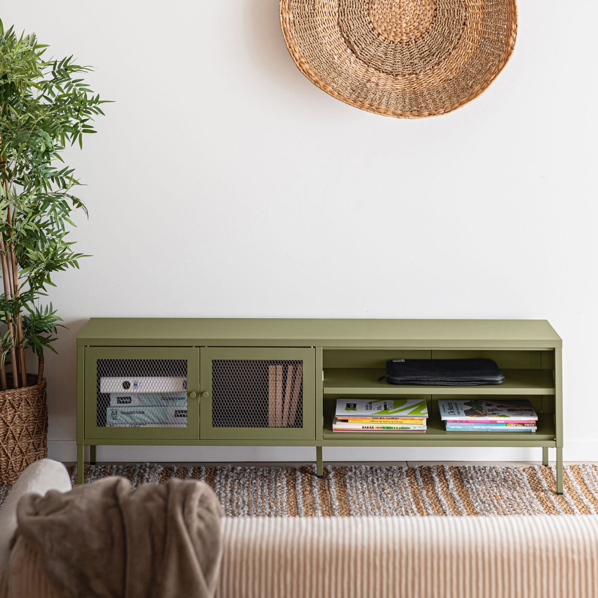 FAYNA - Meuble TV 2 portes et 2 niches en acier - vert