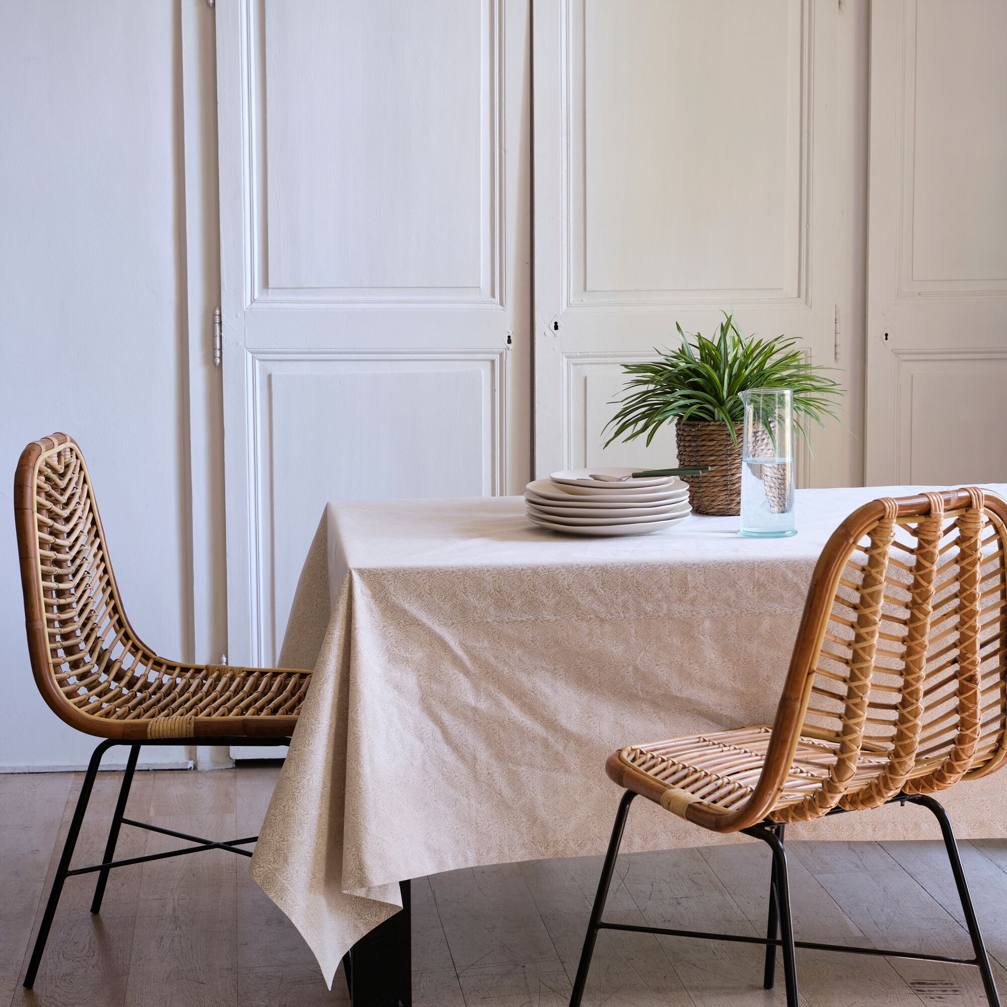 TAMY - Nappe enduite en coton - beige alpilles 150x250cm