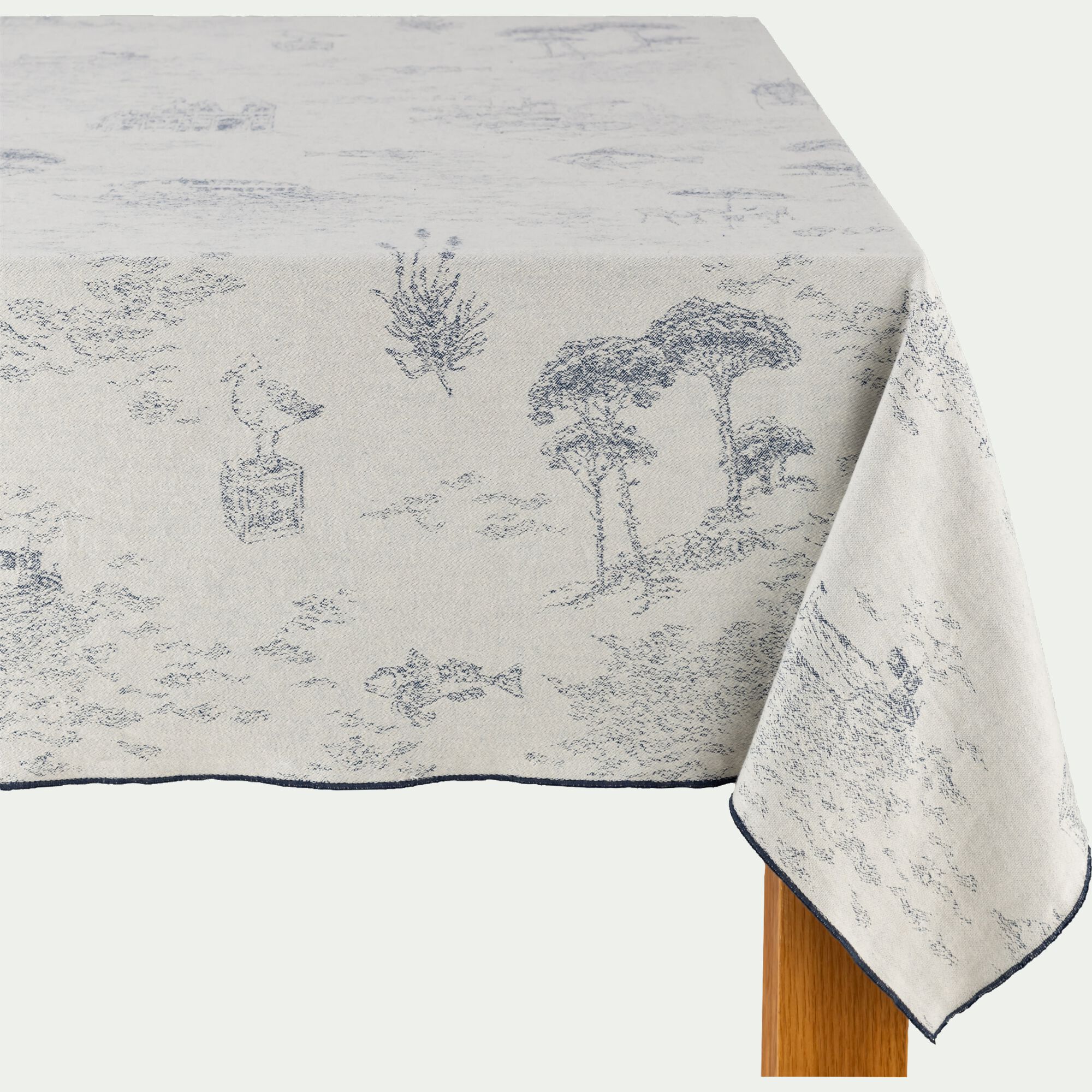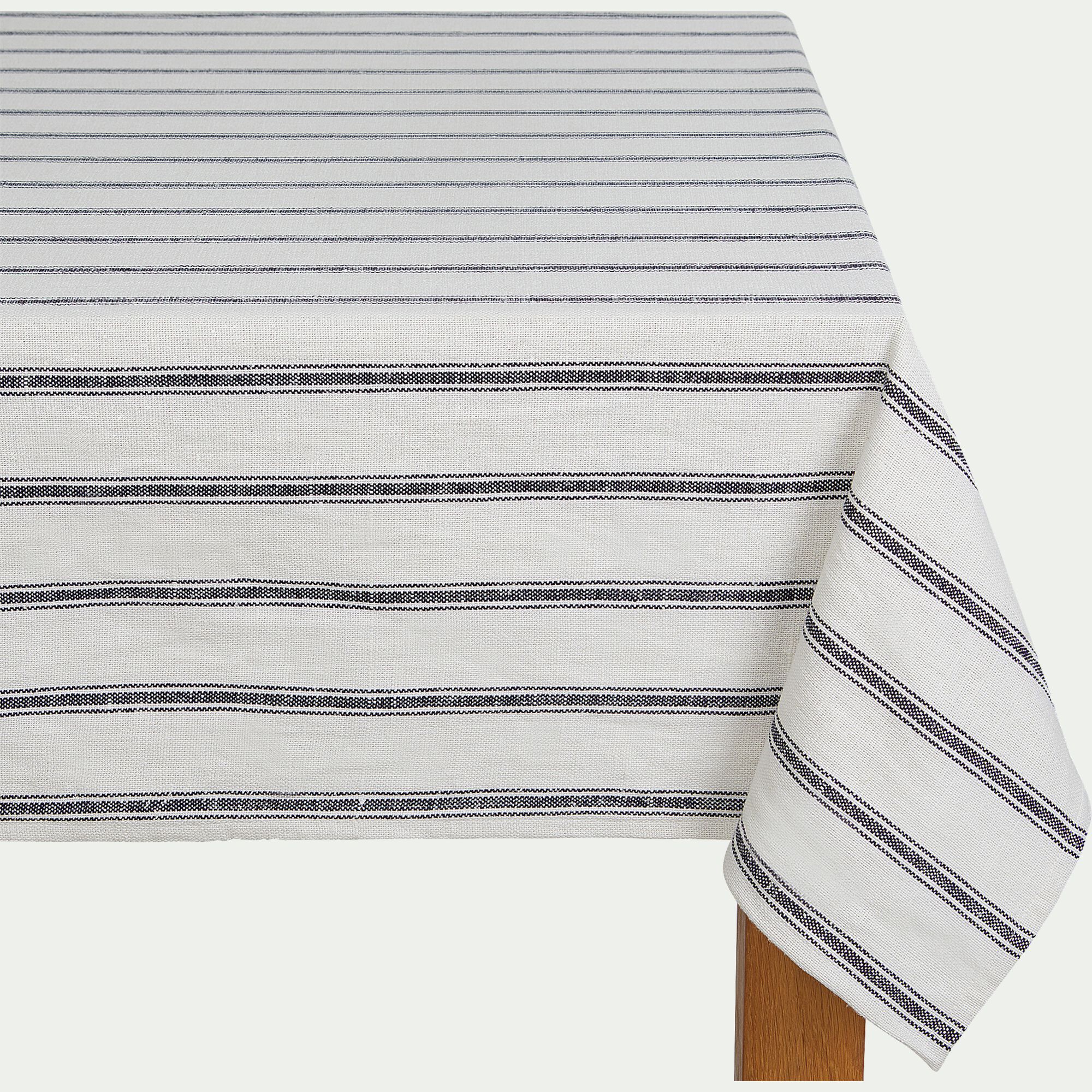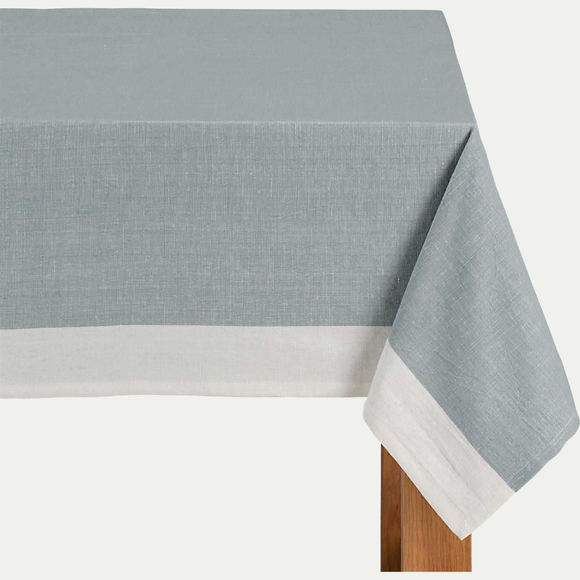 SIL - Nappe en lin et coton - bleu calaluna et naturel 170x250cm