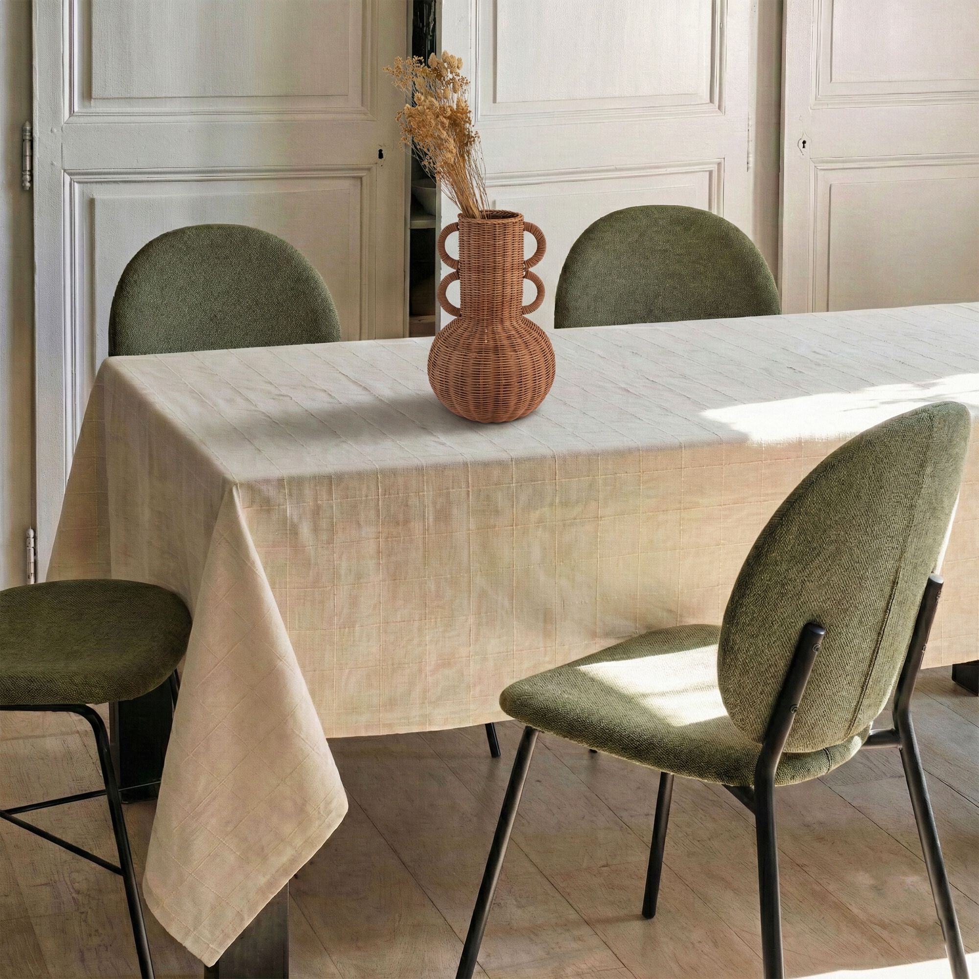 LANIS - Nappe en coton 150x250cm - vert mousse