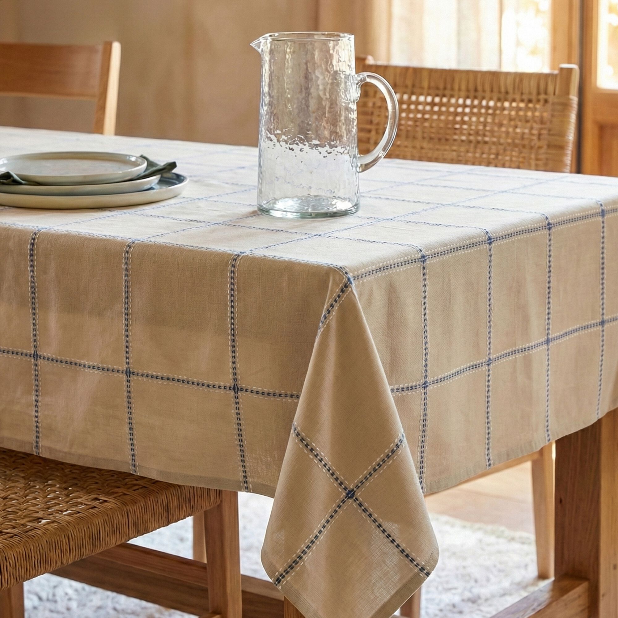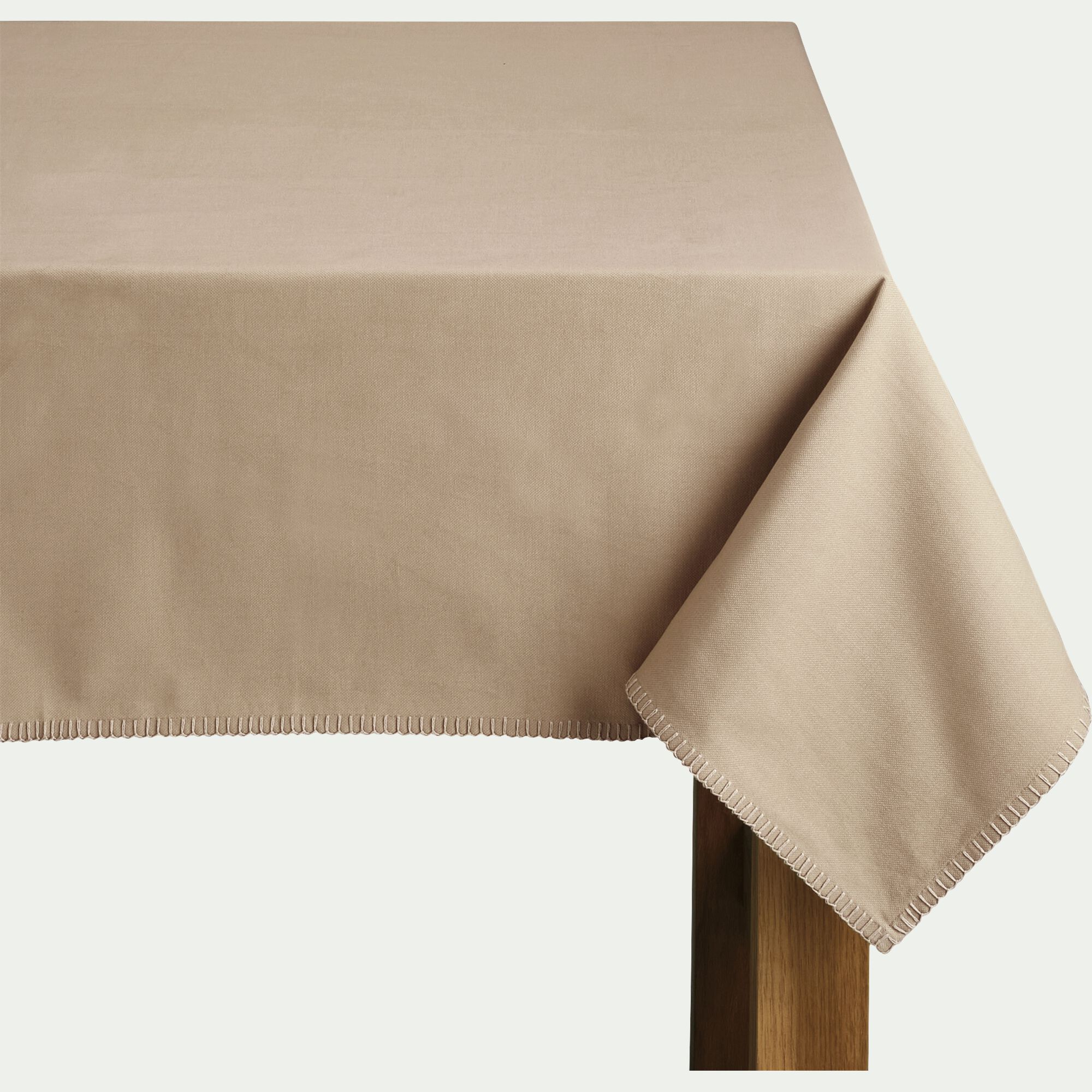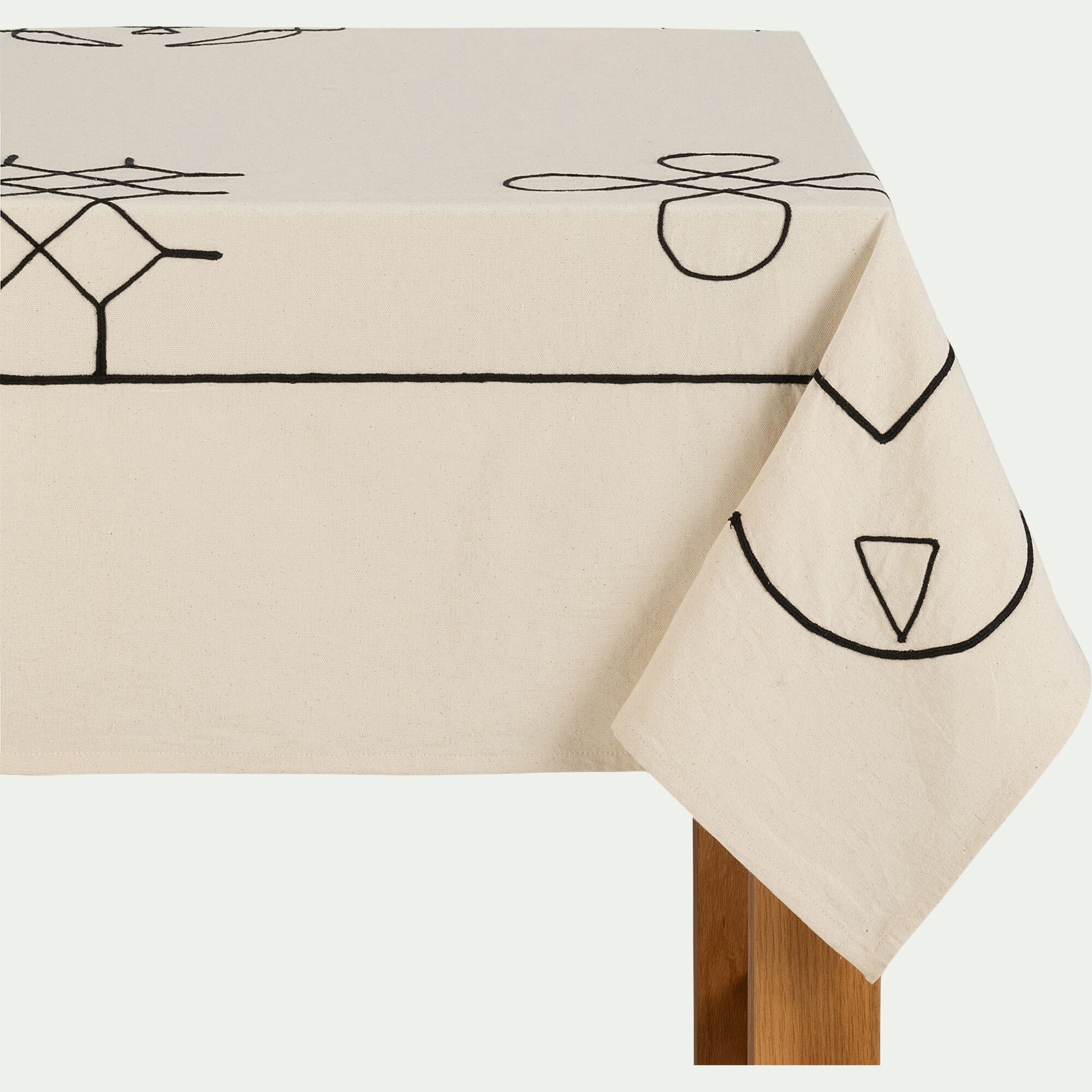 AGDE - Nappe brodée en coton 150x250cm - beige corde