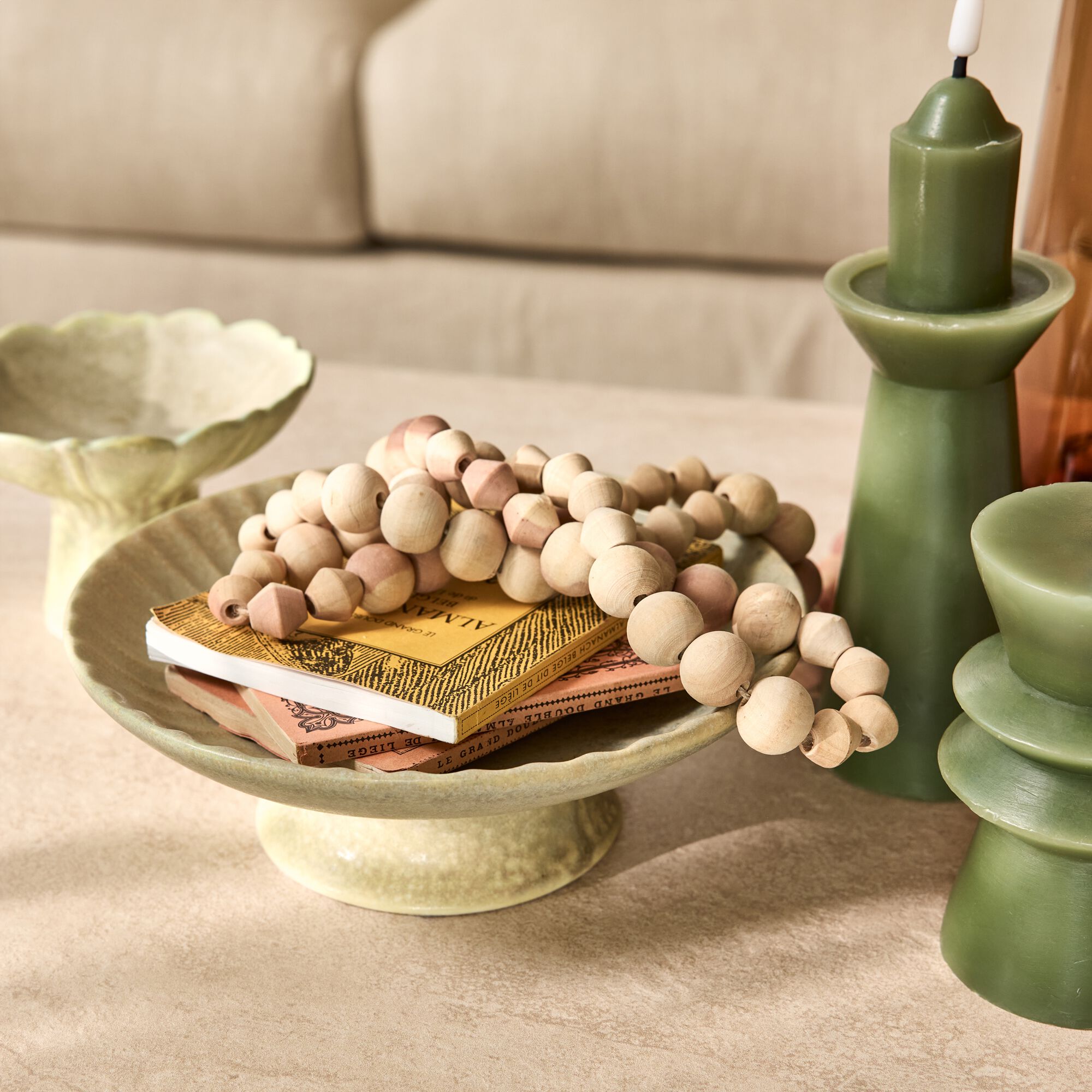 PLEAU - Coupe décorative en grès D21cm - beige