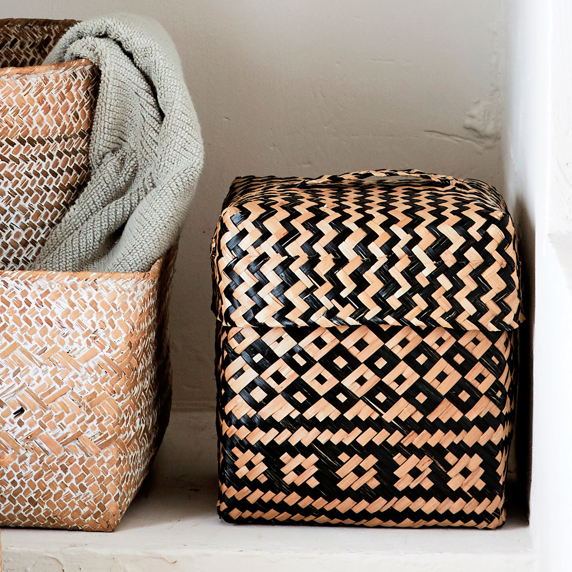 ALICANTE - Lot de 2 paniers déco en jonc de mer - naturel