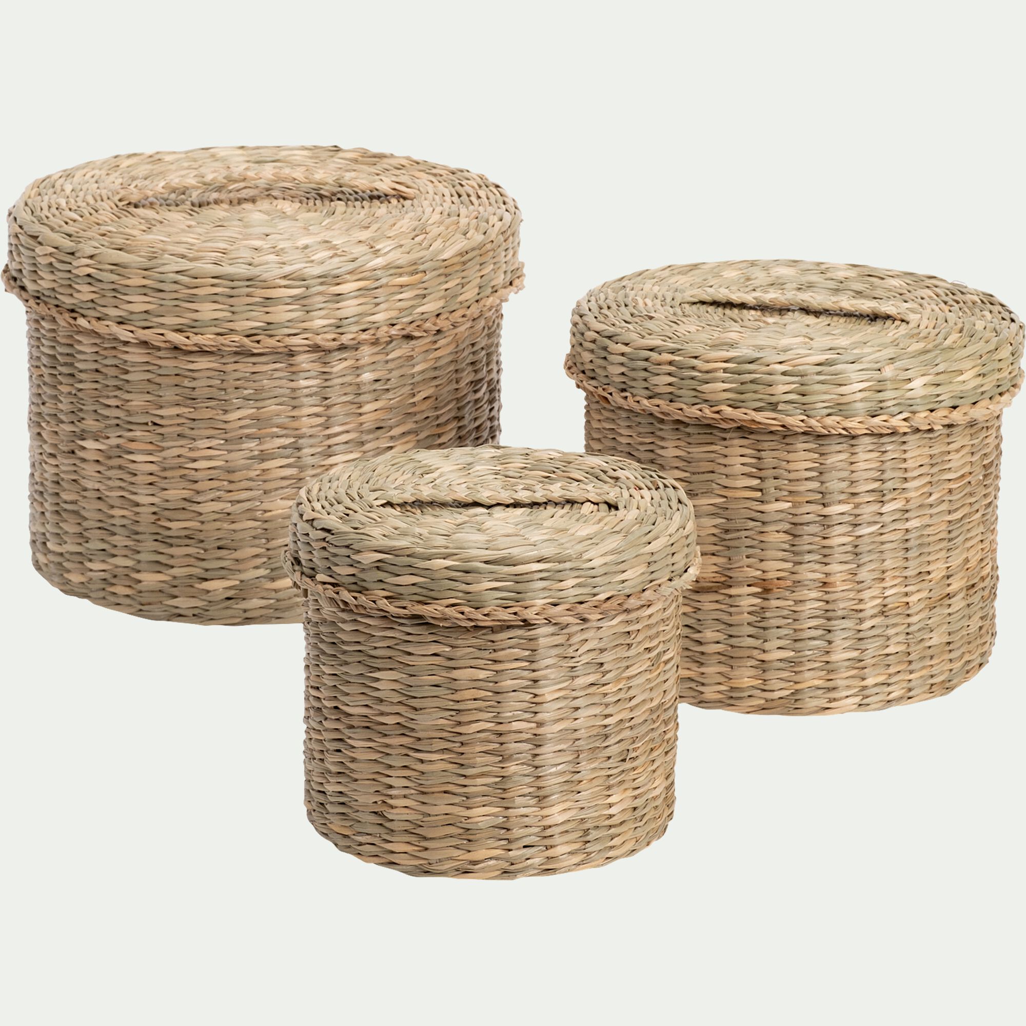 MELILLA - Lot de 3 paniers en jonc de mer ronds - naturel