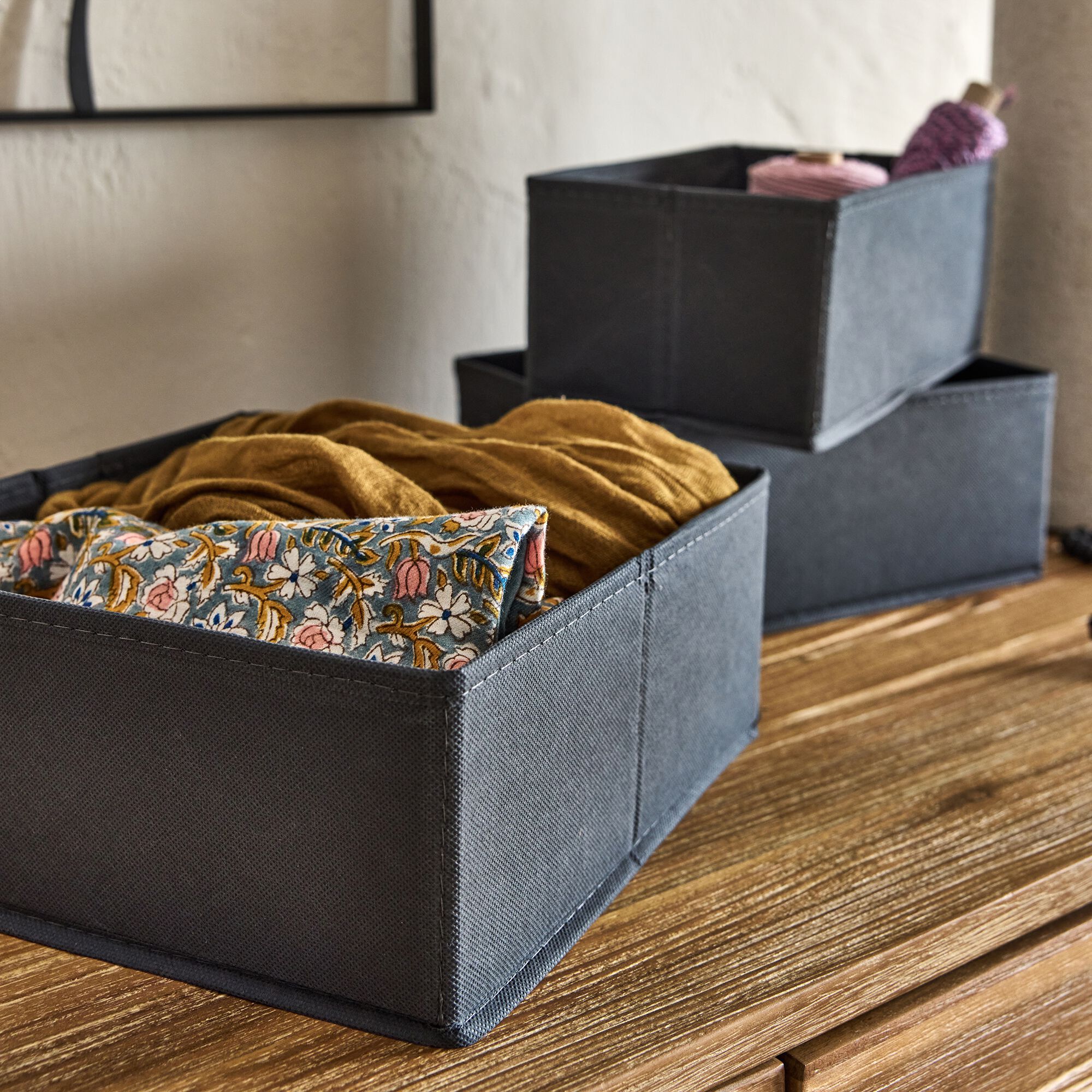 DIONIS - Lot de 5 paniers organiseur - gris