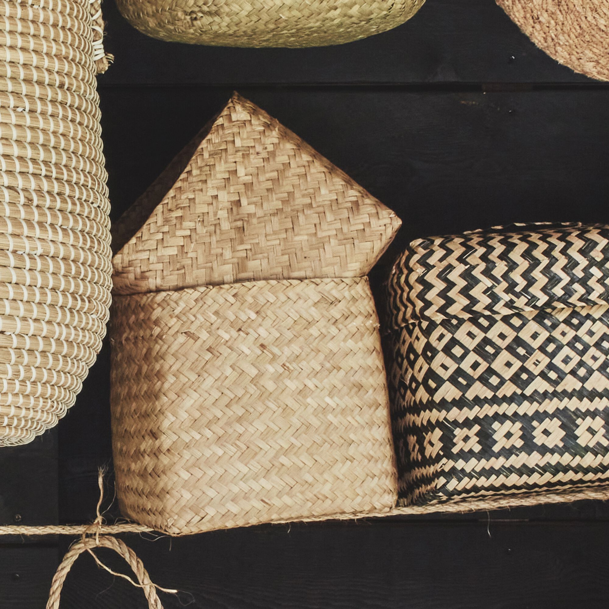 LILY - Lot de 2 paniers en jonc de mer - noir