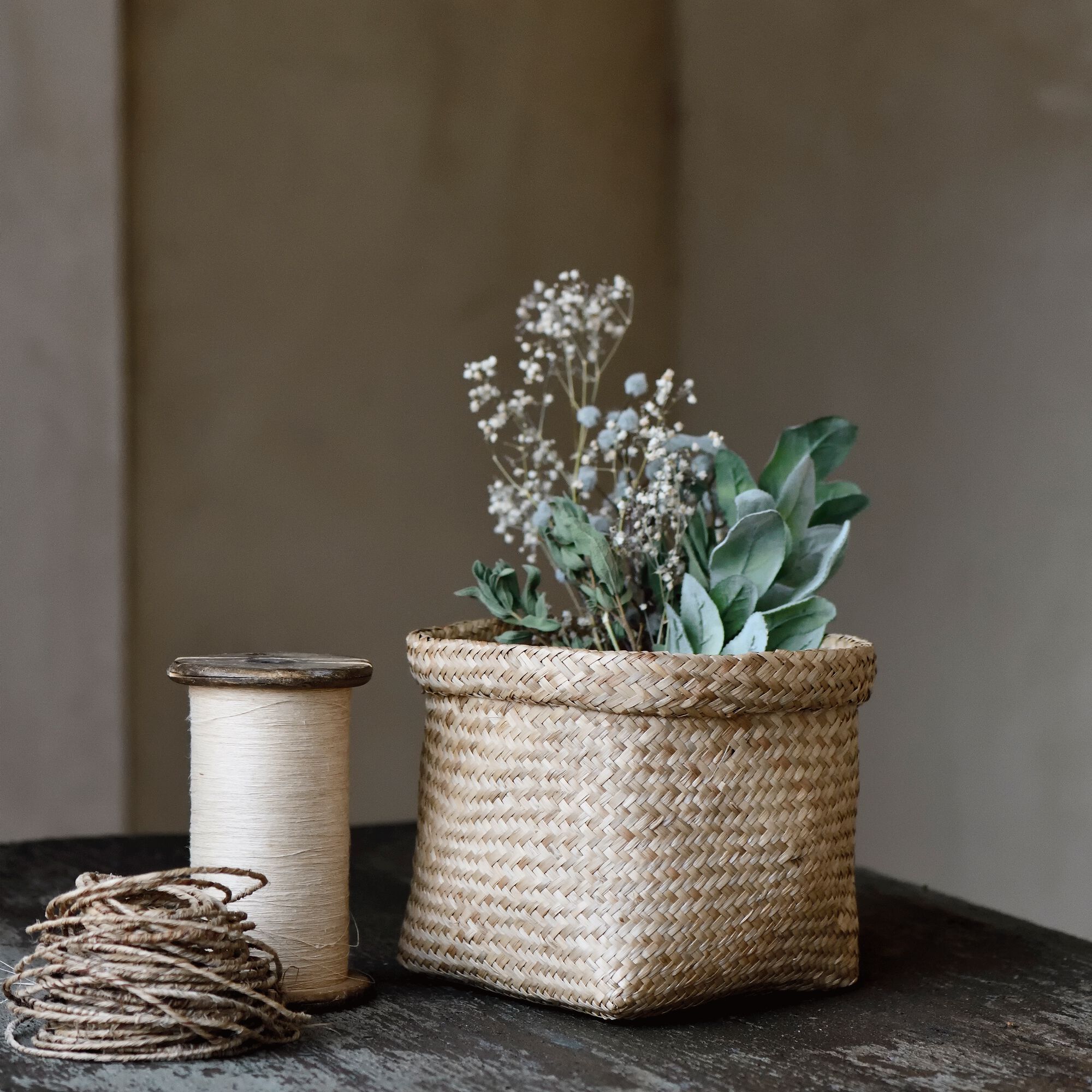 DANA - Panier en jonc de mer - naturel H14,5xD16,5cm